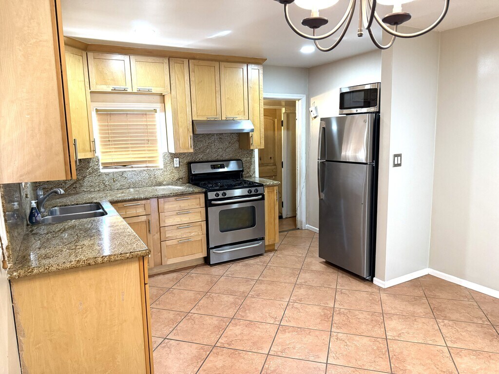 Lovely home on a Quiet, Tree-lined street. Spanish charmer! Spacious Living Room. Kitchen has luxurious Granite countertops, upgraded tile floors, stainless appliances, and room for dining table. Bathroom is upgraded with granite counter and tile. Lovely bamboo wood floors. Includes one parking spot on driveway. Redwood-style back yard patio. Pets on approval. Central location. Owner has real estate license. There is a house at the rear of the property that is rented separately.