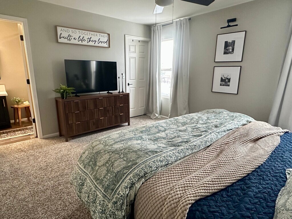 Beautiful, modern home available for rent! This fully furnished property features 3 bedrooms, 2.5 bathrooms, and a dedicated office space, offering plenty of room for comfortable living and working from home. Enjoy a large, spacious backyard, perfect for relaxing or entertaining. Dogs are welcome for an additional $100/month. The home includes all kitchen appliances, washer and dryer, and an 240-electric vehicle hookup for added convenience. All utilities (water/sewer/gas/electricity/trash/wifi & lawn maintenance during summer months) are included in the rent, making for easy, low-maintenance living.