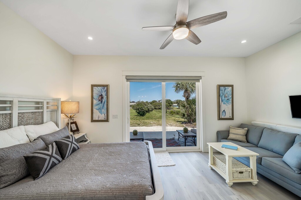 2 bedroom, 2 bath with a kitchenette. This is the ground floor of a 3 story home. walk out the door to plenty of parking and across the street to the gulf. This is a Short term rental that can be rented weekly or monthly up to 3 months. Fully furnished with all utilities included Large groomed field in back of home. Located on the West end of PCB next door to the Carousel Market.