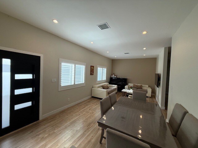 This newly constructed residence offers modern comfort and functionality and is located in a convenient part of Sun Valley (close to Freeway 5 and Glenoaks). This ADU features high ceilings, three bedrooms, and 2.5 bathrooms, with a total living area of approximately 1,160 square feet. This property is equipped with 10 solar panels, and all windows are fitted with wood shutters. There are two parking spaces available on the driveway, conveniently located next to the exterior gate. An outdoor storage area is included adjacent to the house. The property has a backyard which can be used as a patio, and a BBQ area. The house comes with a washer and dryer, a refrigerator, a gas stove, a microwave, and a brand-new dishwasher. The tenant is going to pay for all utility bills (with electricity billed separately, water and sewage system measured by metering, gas separately, and garbage). -Tenant is going to pay for all utility bills. -1 year contract required