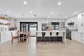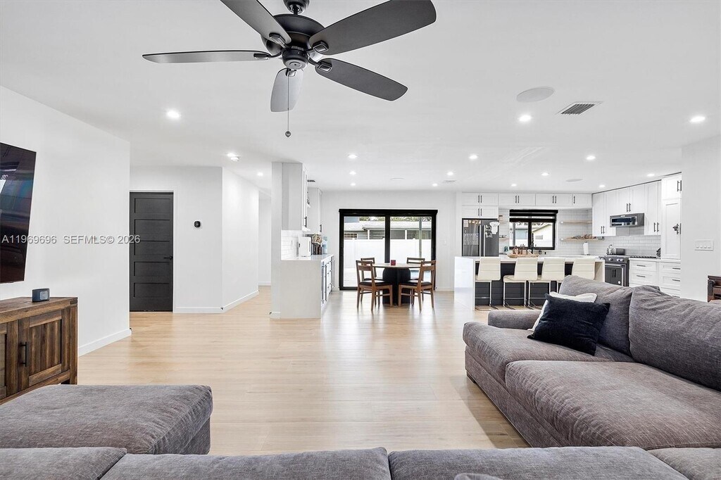 Stunning 2,188 sqft of fully renovated luxury living! Home is a 4/3 + an office and features include impact windows/doors, built-in speakers throughout, porcelain wood-look tile, custom kitchen with quartz waterfall island, black finishes, soft-close cabinets, and stainless-steel appliances. Bathrooms offer LED mirrors, vessel sinks, and frameless glass showers. Spacious primary suite with custom walk-in closet and spa-style bath featuring soaking tub and rainfall shower. Amazing backyard includes a heated pool equipped with LED lights and a covered patio. Indoor laundry room with new washer & dryer, smart lighting, security system, blackout shades, and many other amenities storage. Pets welcome! Available May 1, 2026