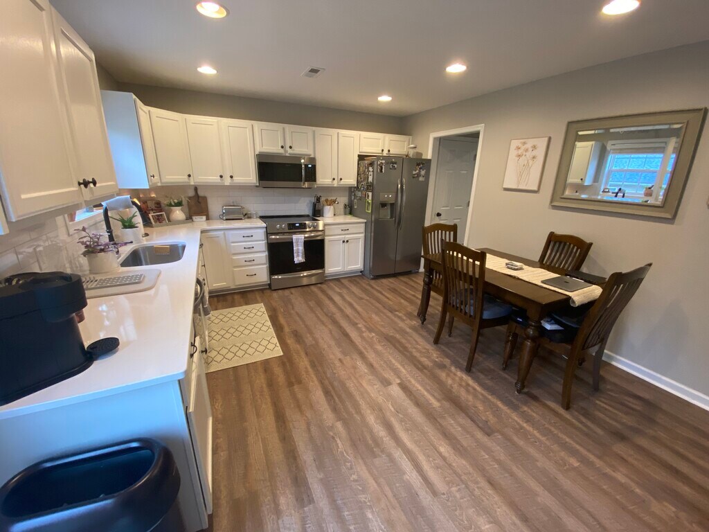 4 bedrooms 3.5 bathrooms Bonus downstairs living room that could easily double as a 5th bedroom with private bathroom access. WATER/TRASH/YARD CARE included in rent price ($150 Value)