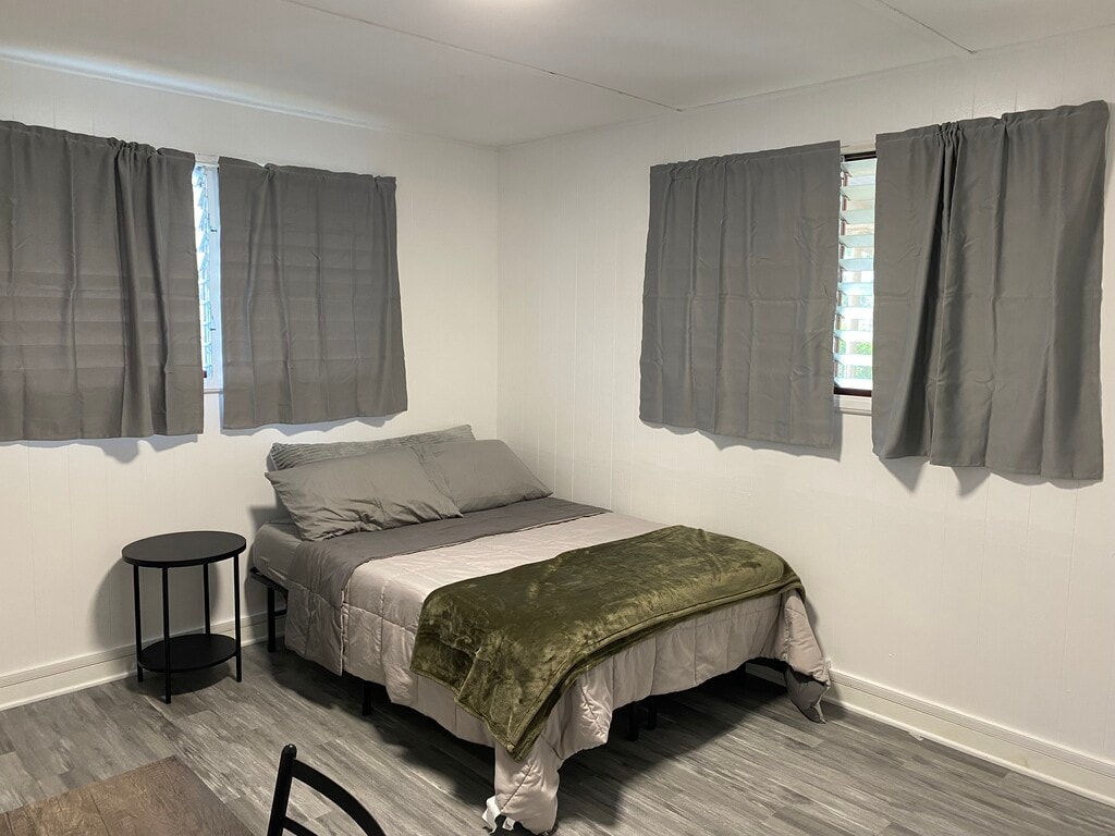 Three bedroom, one bath house close to the University of Hawaii at Hilo and shopping. The house is full furnished with a spacious living area, large yard and covered parking. Utilities, internet/wifi and trash service included.