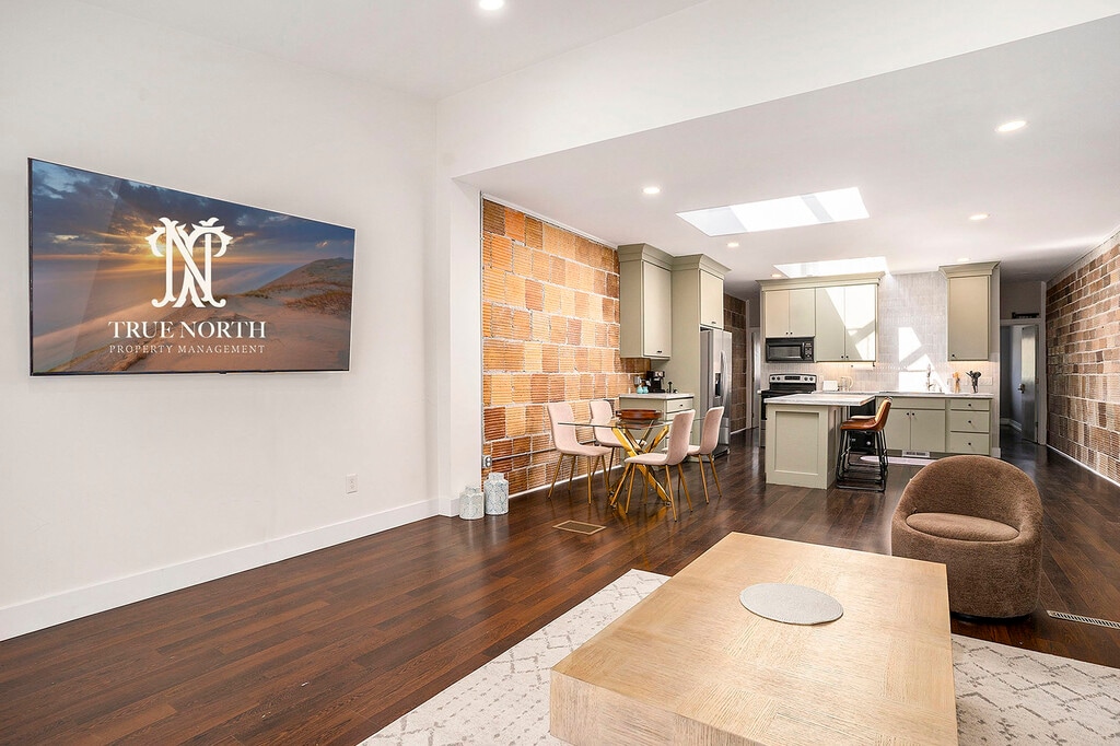 Welcome to your ideal home at 110 Washington Ave, located in the vibrant heart of Grand Haven, Michigan. This beautifully renovated loft is perfect for long-term stays, accommodating 4 guests with 2 bedrooms and a cozy loft, providing a comfortable and stylish living space. Key Features: Spacious Living: Enjoy over 1,000 square feet of living space, highlighted by 14-foot ceilings and stunning original brickwork that combines historic charm with modern amenities. Chef’s Kitchen: A fully equipped kitchen with a large center island, perfect for cooking and entertaining. Natural Light: Two oversized skylights flood the open-concept layout with natural light, creating a warm and inviting atmosphere. Private Patio: Relax on your own outdoor space featuring a gas grill and bistro dining set—ideal for enjoying meals al fresco. Elevator Access: Access the shared rooftop deck for breathtaking views of the channel, sunsets, fireworks, and the iconic Musical Fountain. Prime Location: Situated just steps away from the waterfront, restaurants, boutiques, and the scenic boardwalk, everything you need is at your fingertips. Enjoy easy access to the beach and a variety of local attractions, making this the perfect spot for a long-term stay. Make this charming condo your home base as you explore all that Grand Haven has to offer!