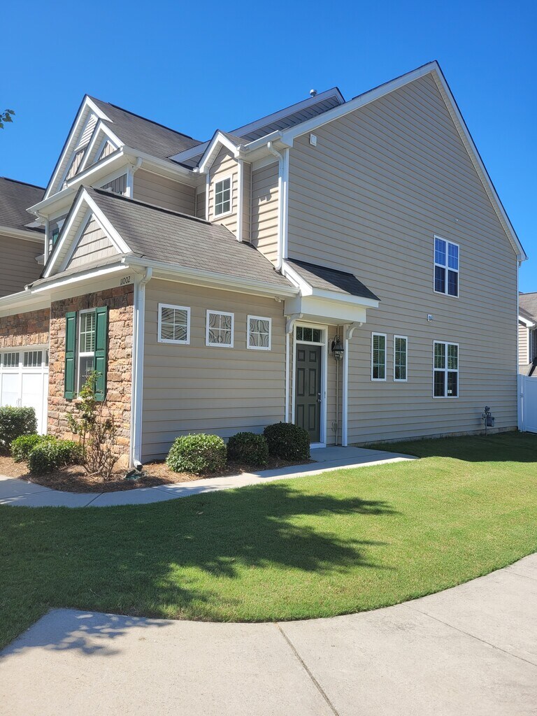 End Unit townhome in popular Stone Creek Ranch. 3bed, 2.5 bath with office/flex room on main. 2 car garage. Tons of natural light with an open floorplan. Well maintained and freshly painted with hardwoods on main, stairs & up through master. Master with tray ceiling, 2 walk in closets & spacious bath. Kitchen with gas range, SS appliances, granite counter tops & tile back splash. Back yard is fenced and private with extended patio. Great schools! Right between Waverly and Rea Farms where you'll find a wide variety of restaurants, Whole Foods, Harris Teeter, Lifetime Fitness. Water, trash & lawn care included in rent. Very Large Neighborhood pool membership is included! Very close to great schools. Sorry No Pets Please.