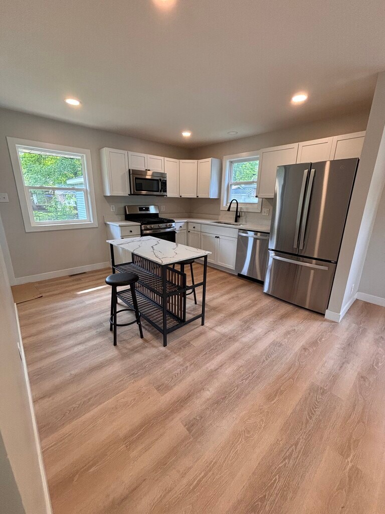 Newly renovated cozy 3 bedroom, 1 bath house with 2 bonus rooms in basement. Stainless steel appliances, laminate wood floors, granite countertops, and Washer/Dryer hook up in basement. 1 car detached garage and partially fenced in yard. Located in Michigan City, Indiana in quiet neighborhood.