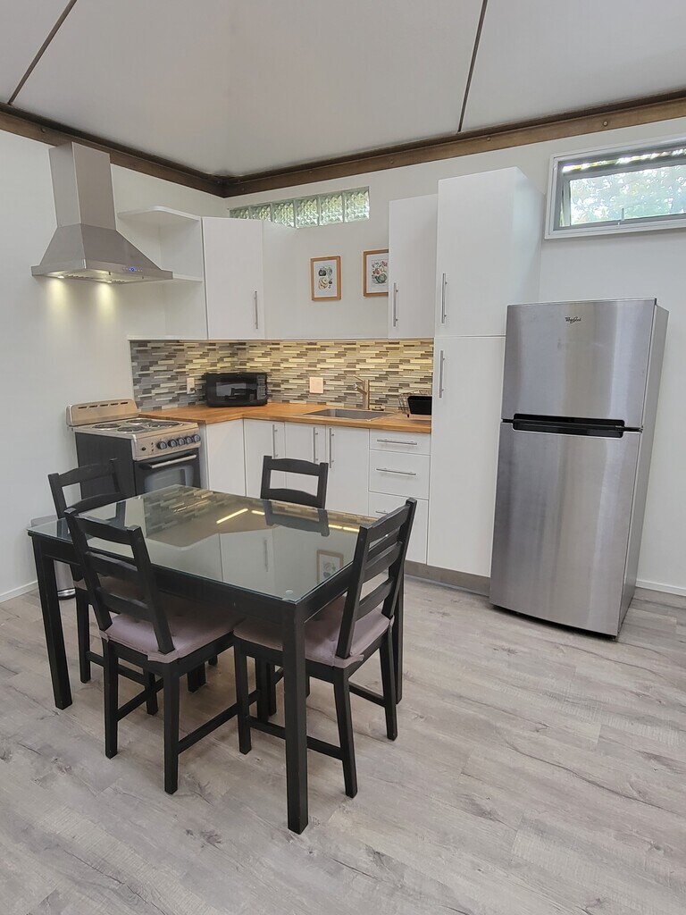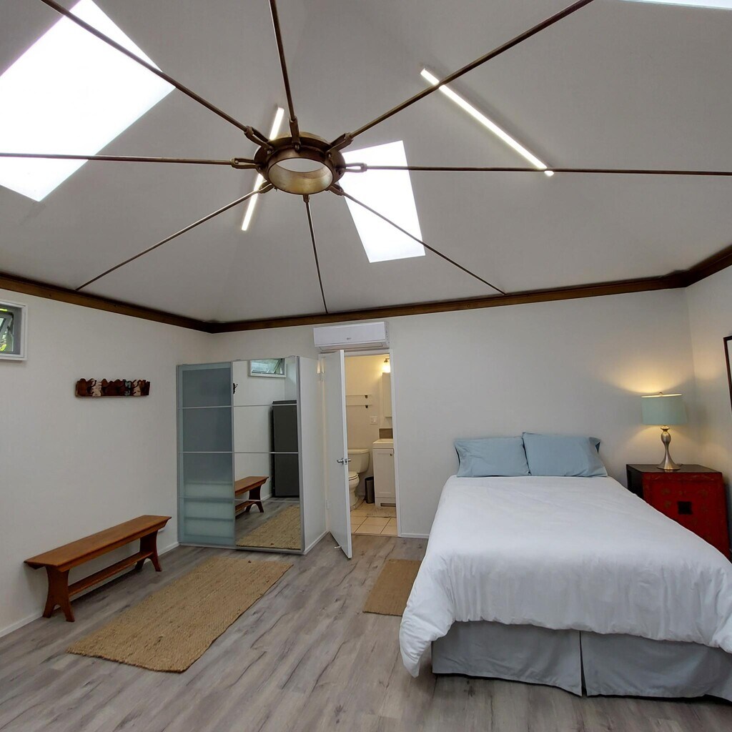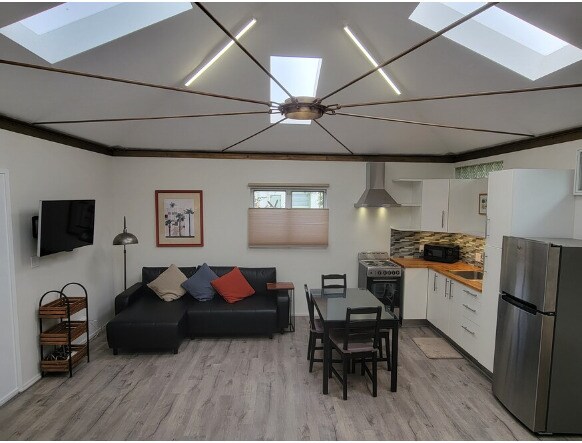 Un estudio privado, lleno de luz y recientemente renovado, ubicado en el corazón de Venecia. Esta luminosa y espaciosa unidad se encuentra a pocos pasos de restaurantes locales, cafeterías, galerías de arte y todos los lugares de moda de la zona, así como de la playa. El estudio cuenta con techos altos, tragaluces y puertas dobles que conducen al jardín, donde encontrará una sala de estar con mesa y sillas. La cocina completa está equipada con todo lo necesario, como un refrigerador, una estufa, un horno de microondas y una tostadora. No se proporcionan toallas ni ropa de cama. También encontrará un cómodo sofá, un televisor de pantalla plana con Roku y una mesa de comedor con sillas. La unidad está controlada por temperatura con un sistema "minidivisor" que calienta y enfría el espacio. Hay una lavandería compartida justo detrás del estudio, así como una ducha en la playa. El alquiler incluye servicios públicos como electricidad, gas, agua e Internet de alta velocidad. El acceso al estudio se realiza a través de una puerta lateral con un teclado y hay mucho estacionamiento disponible en la calle. Tenemos dos perros bien comportados que disfrutan del patio compartido cuando estamos cerca. El estudio cuenta con un pequeño porche cerrado para mantener a las mascotas alejadas. Venecia es conocida por sus canales, inspirados en los de Italia, y el icónico paseo marítimo, hogar de Muscle Beach, artistas callejeros, vendedores, bares y restaurantes. El moderno Abbot Kinney Boulevard y la prometedora Rose Avenue también son destinos populares, con una variedad de restaurantes y tiendas de moda. Asegúrate de visitar el muelle de Venecia, donde puedes disfrutar de vistas panorámicas y excelentes opciones gastronómicas.
