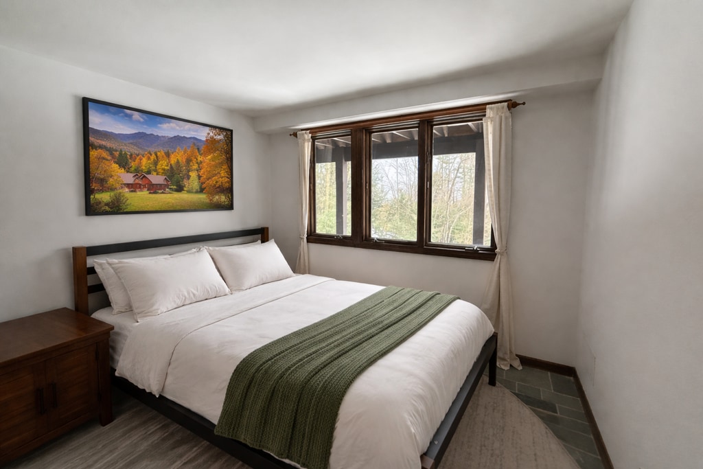 Enjoy all Stowe has to offer from this peaceful first-floor getaway, just 2.5 miles to Stowe Village and 15 minutes to Stowe Mountain Resort. With 2 comfortable bedrooms, one with a queen bed and one with a king bed, this inviting retreat is perfect for a relaxing stay. The bright kitchen makes dining in easy, while the cozy living room offers a welcoming space to gather and unwind. Outside, a large backyard and grill add to the charm, giving you plenty of room to enjoy the fresh Vermont air.