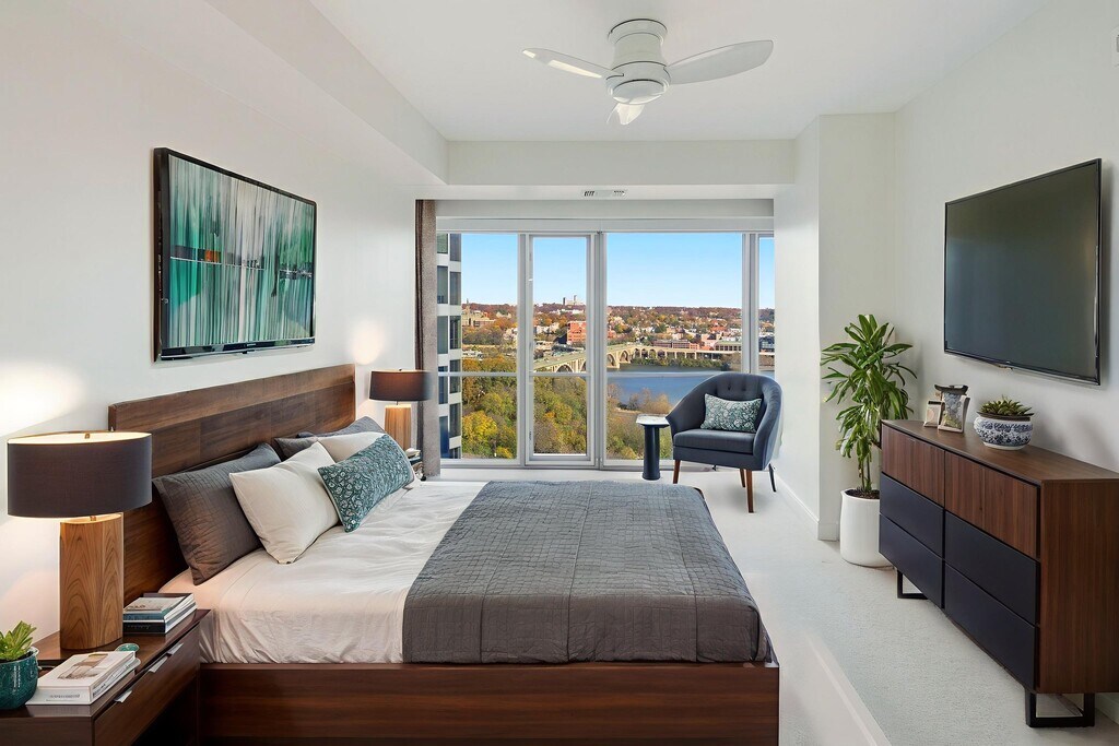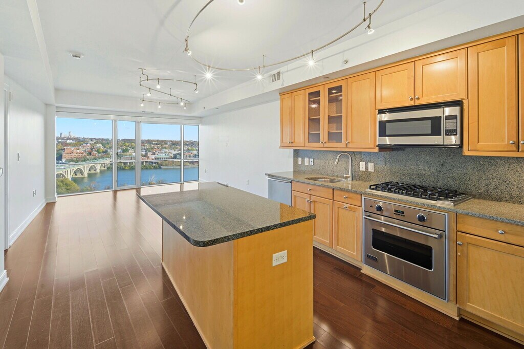 Welcome to upscale living in The Waterview, Arlington’s premier high-rise. Recently reconfigured, unit 1901 offers two spacious bedrooms and two full bathrooms—perfect for those seeking flexibility in their living space. Enjoy a bright, open-concept living and dining area with expansive windows for sweeping city and river views. The elegant interiors feature hardwood floors throughout the main living spaces and plush carpet in the primary bedroom. The gourmet kitchen is outfitted for the chef-at-heart with top-tier appliances: a Viking stove and oven, Subzero refrigerator, Dacor microwave, Miele dishwasher, and a generous island for seating and entertaining. Both bedrooms are designed for comfort and privacy. The primary suite features floor-to-ceiling windows with noise-reduction window inserts, electric drapes, and a walk-in closet; the secondary bedroom (converted den) includes a door for true separation and ceiling fan—ideal for guests, a nursery, or dedicated office. A separate closet houses your Miele washer (self-dosing) and dryer for laundry convenience and quiet. Smart-home touches include Lutron shades, ceiling fans in both bedrooms, and electric drapes in the primary suite for total light control. Additional luxury amenities include assigned garage parking (with access to electric vehicle charging stations), 24/7 concierge service, residents’ lounge, gym, meeting room, a stunning rooftop deck with BBQ area, valet hotel parking, and curated outdoor spaces. Key Features: • Two-bedroom, two-bathroom floorplan • Premium kitchen: Miele dishwasher, Subzero fridge, Viking stove/oven • Dedicated laundry closet with Miele washer/dryer • Lutron shades, noise-reduction window inserts, electric drapes, ceiling fans • Hardwood flooring, walk-in closet, custom shelving in second bedroom Building Amenities: • 24/7 concierge, residents’ lounge, fitness center, meeting room • Rooftop deck, BBQ area, valet and assigned garage parking with EV charging • Prime Rosslyn location near Metro, Georgetown, dining, and DC landmarks Embrace sophisticated city living and high-rise luxury in one of Arlington’s finest two-bedroom residences. Schedule a private tour today!