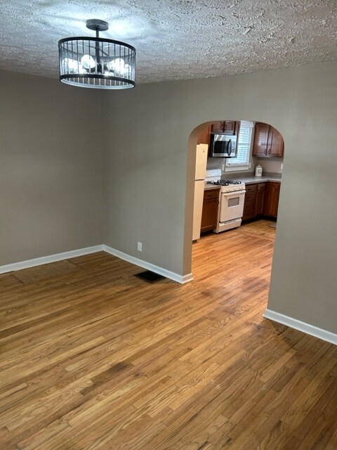 Recientemente renovado: Nuevo panel de yeso en toda la casa. Pintura fresca y zócalos nuevos. Pisos de madera noble en toda la propiedad. Toda la casa se ha vuelto a cablear y tiene una nueva caja de disyuntores. El baño cuenta con un tocador, lavamanos e inodoro nuevos con bañera con acabado renovado. Rodeado de azulejos en la ducha y pisos de azulejos en el baño. Nuevos armarios de cocina, fregadero, grifo, microondas y cafetería. Cocina a gas. Se suministra lavadora y secadora. Sótano grande sin terminar seco. Nueva cubierta espaciosa en la parte delantera. Un barrio muy agradable. Dos grandes árboles de arce en la parte delantera. Pequeño patio trasero con cobertizo. Estacionamiento fuera de la calle. Ubicación céntrica en New Albany.