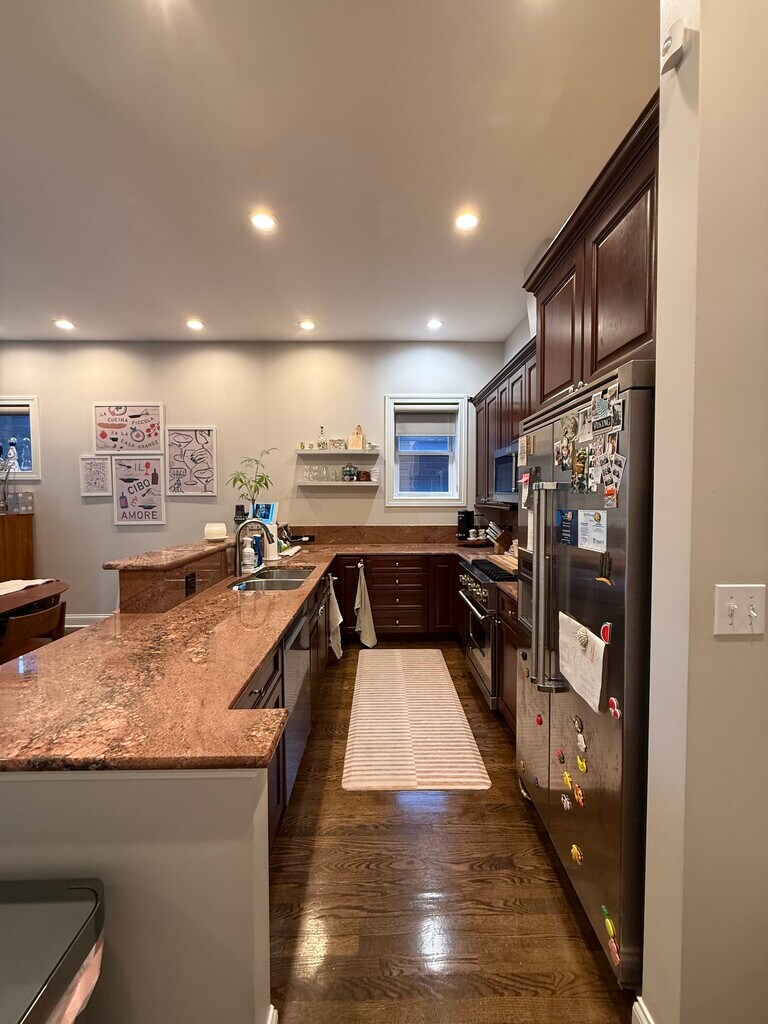 1116 W HUBBARD ST UNIT 4W CHICAGO, IL 60642 Experience the best of city living in this stunning 2-bedroom, 2-bathroom condo offering over 1,500 square feet of thoughtfully designed indoor and outdoor space. Located right where West Loop, Fulton Market, and West Town meet, this home delivers the energy of the city with the warmth of a private retreat. Step into a bright, open living area with high ceilings, newly finished hardwood floors, and neutral modern finishes. The spacious layout flows seamlessly to a balcony with incredible city views. The chef's kitchen is both beautiful and functional, featuring granite countertops, stainless steel appliances, maple cabinetry, a double sink, and a breakfast bar ideal for casual meals or entertaining. The primary suite is complete with a large walk-in closet, double vanities, a jacuzzi tub, and a walk-in steam shower. The large second bedroom offers flexibility than just a bedroom use it as a guest room, office, home gym, or nursery. Enjoy the convenience of an in-unit washer and dryer, discreetly tucked away in its own closet. Head upstairs to your show-stopping private rooftop deck over 800 square feet of open-air living with panoramic skyline views, a mini bar with fridge and sink, and a large storage closet perfect for entertaining, relaxing, or soaking up Chicago's skyline. Additional highlights include indoor heated garage parking spot, private dedicated storage closet, high-speed internet, ADT security system, new canned lighting throughout, and smoke-free + pet-free living. Located steps from Chicago's West Loop best dining, shopping, and entertainment, this home blends luxury, convenience, and style all in one of the city's most desirable neighborhoods.