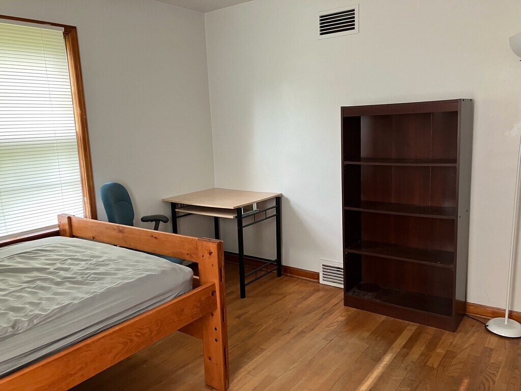 Close to Purdue Golf and Stadium. Walking distance to campus. Nice quiet neighborhood. Own private room over look big back yard. Locate st the back of the house, quiet and relaxing. Own private newly remodeled bathroom. Free furniture to use if needed: Full wooden headboard & footboard bed, night stand, desk, adjustable office chair, 2 drawers systems for personal items or office supplies, bookshelves, and personal refrigerator. Central air, hardwood floors, Washer & dryer, attached garage, extra large living room with wood burning fireplace, formal dining room, huge family room/sun room with fireplace and with glass Franch door leads to covered porch large brick patio next to covered porch $1000 per month plus 1/3 utilities.