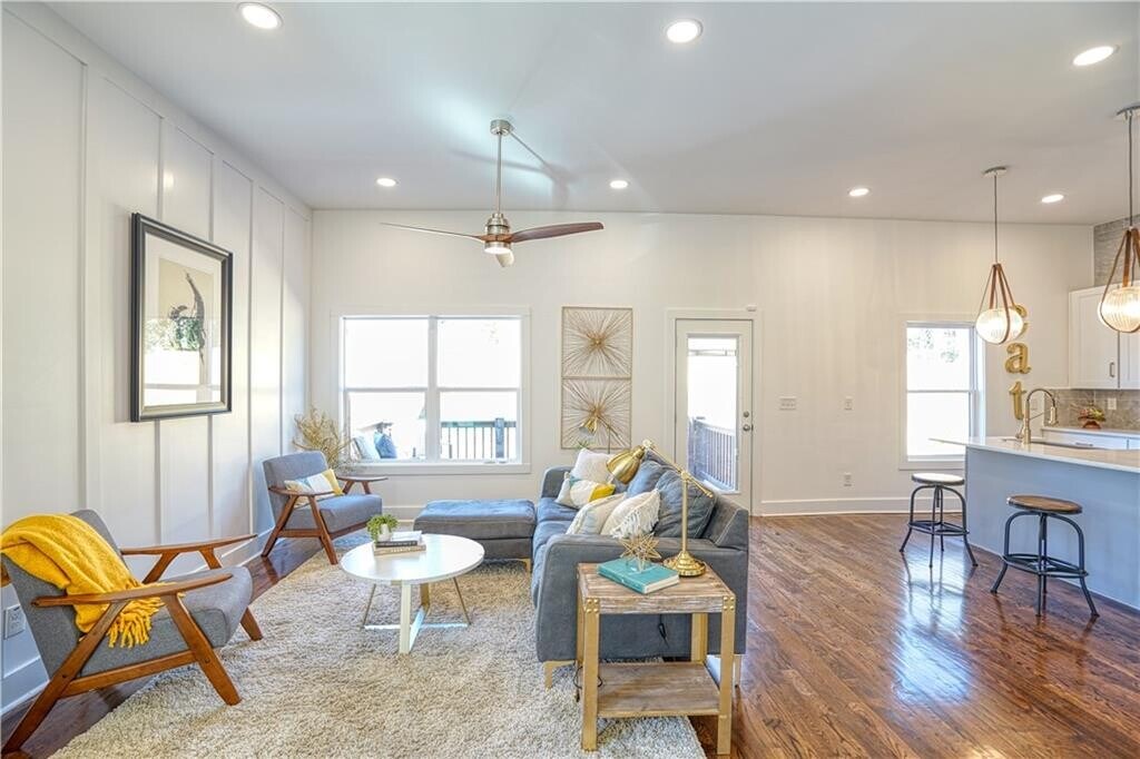 Perfect location! 10 minutes to Downtown, 10 minutes to Hartsfield-Jackson International Airport, 5 minutes to Lee and White/Beltline, 2 minutes to Tyler Perry Studios! A 13 minute stroll to MARTA Lakewood station or one block to the 172 bus line that takes you straight there. Gorgeous and unique newer construction luxury Atlanta home! Enter through the large, covered front patio to your grand foyer. 12 foot ceilings and hardwood floors with refined wood detail work on the main level make for a grand living space. The great room features enough space for a giant sectional and a TV mount and wiring are included for a 65 inch TV. A luxury kitchen with high end appliances, a large island, ample cabinet space and quartz counters finishes off the main living space. Inside the master on main, you'll find DOUBLE OVERSIZED MASTER CLOSETS with a bedroom space that can easily fit a king bed with space for more furniture. The luxury bathroom features a stand up soaking tub, oversized shower, and large double vanity. Upstairs, you'll find a massive second bedroom, easily big enough to fit two queen beds or a bunk beds if so desired. A giant walk-in closet is a bonus. The upper level also features a good-sized third bedroom with view of the backyard, second bathroom with a double vanity, and a large laundry room finished with a newer, high end washer and dryer, with ample cabinet and storage space. In the private fenced backyard, you'll find an oversized deck, perfect for grilling. A giant firepit area is perfect for entertaining. You'll also find updated landscaping, fruit trees, and a large grassy area in this upgraded and private space. This home has been immaculately maintained and ready for its next residents. A brand new HVAC system was installed August 2025. It has also been freshly painted. 1 year lease preferred. Pets allowed with deposit! Owner pays lawn care and alarm system. Tenant pays for all other utilities.
