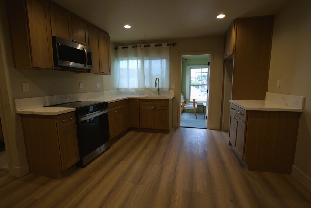 Experience year-round vacation living at 1123 E. Ocean Blvd! This newly remodeled four-plex offers a rare combination of luxury and location, featuring stunning views of the water and THUMS Island. Enjoy seamless indoor-outdoor living with private, fenced-off backyard space exclusive for each unit. This outdoor oasis is complete with new vinyl fencing, fresh grass for your pets, electrical outlets, and custom lighting. Interior highlights include fully remodeled modern kitchens with elegant quartz countertops, new cabinetry, and stainless-steel appliances. The designer bathrooms feature stone and tile surrounds, new vanities, and modern fixtures. Premium upgrades include a new roof, new flooring and paint throughout, energy-efficient mini-split heating/cooling, a tankless water heaters, and updated electrical. For your convenience, there are in-unit washer/dryer hookups and included garage space (no extra fee). Water and gardener services are included, and your furry friends are welcome with no additional pet rent. Perfectly situated just minutes from the beach, Downtown Long Beach, the Queen Mary, Shoreline Village, and the vibrant shops of 2nd Street. Don’t miss this hard-to-find gem—where coastal charm meets modern convenience!