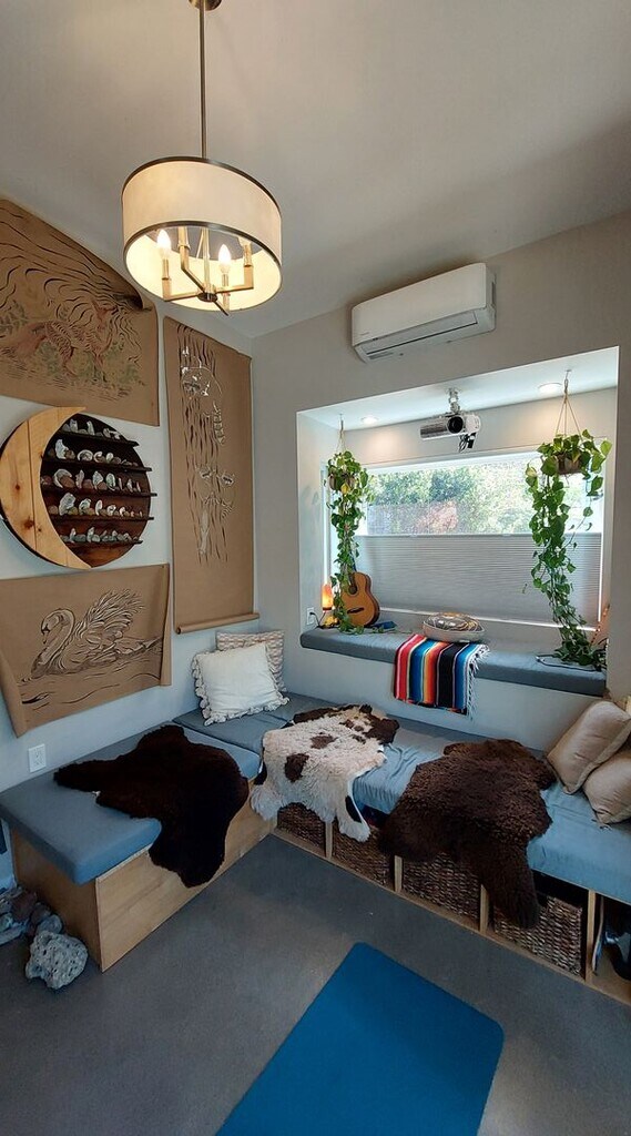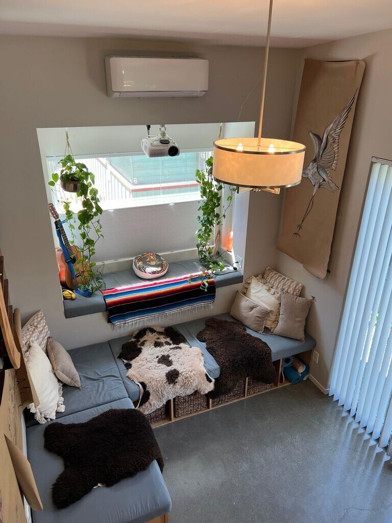 Come live in our charming, thoughtfully designed Tiny Home. Includes high ceilings in the living area with comfortable built-in seating, a low ceiling sleeping loft, a fully equipped kitchen, and a 3/4 bath. The loft, accessible only by ladder, has a queen sized bed, a comfy lounge chair, and a small closet area. The ceiling in the loft is about 4 ft, allowing for sitting only. The kitchen includes a fridge, a 2 burner induction cooktop, and a small oven. It is stocked with cookware and dishes. Home has WiFi, a pull down movie screen and projector, heating and AC, and street parking. The home is on a communal property with 4 other units. There are shared spaces in the yard, including a grill, a firepit, an outside dining table, a garden, and a yard. Everyone living on the property is friendly and respectful. Quiet hours are 10pm-8am. We are located an easy walk from downtown SLO with its restaurants and shops, as well as the train station, grocery stores and pharmacy. Included Utilities: Electricity Water WIFI Garbage/Recycling/Green Waste