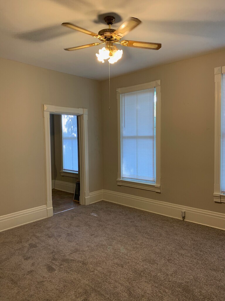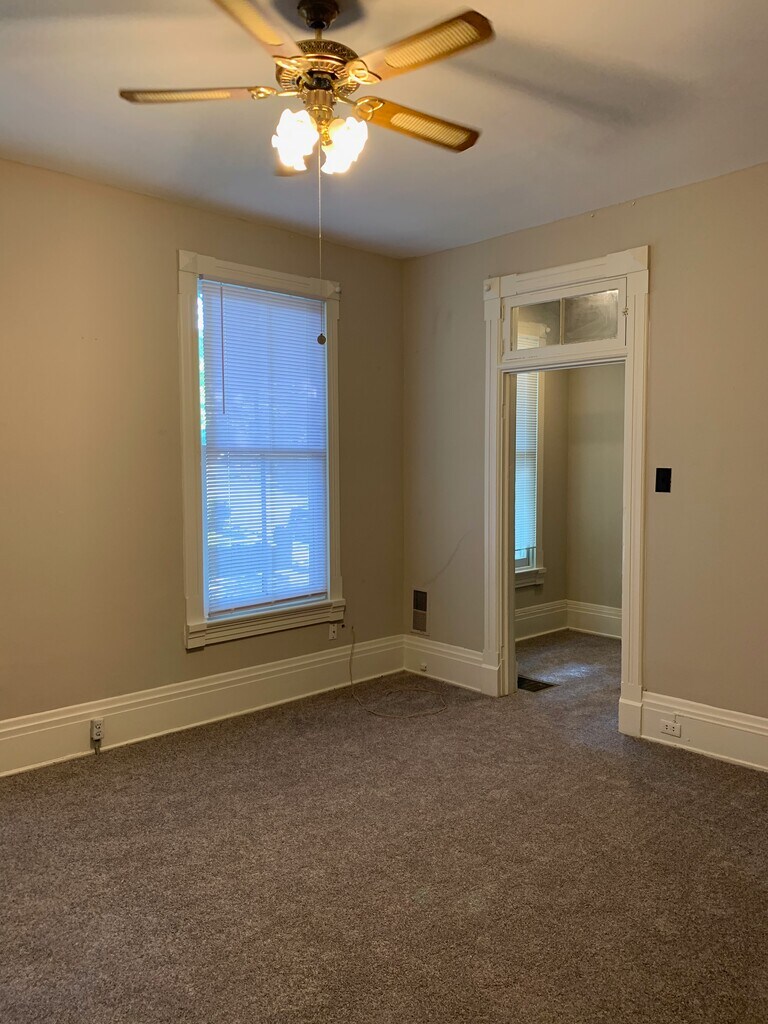 Second and third floor apartment Large apartment Large kitchen with refrigerator, dishwasher, and stove One bedroom with ensuite bathroom on second floor Three bedrooms on third floor Kitchen includes stove and refrigerator Track lighting Ornamental fireplaces Mini blinds in all windows Ceiling fans Wall to wall carpet Central A/C and heat Grass backyard Internet and cable ready (Spectrum or AltaFiber) Coin laundry on site Off street parking-3 spots ($50/spot/car) Short walk to UC Campus & Shuttle Stops Cats OK