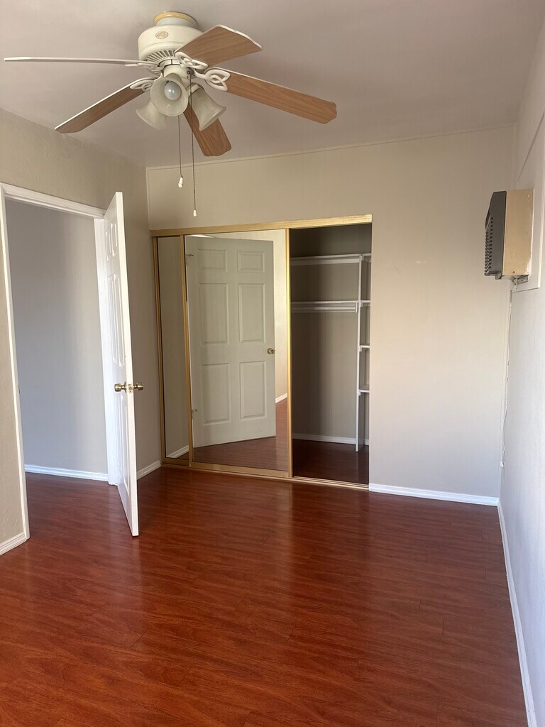 2 bed 1 bath - Upstairs unit - close to schools and shopping. 1-car Parking Included. Cute two bedroom unit available now. Upstairs unit with wall A/C and heater. Washer/Dry units available onsite (coin operated)