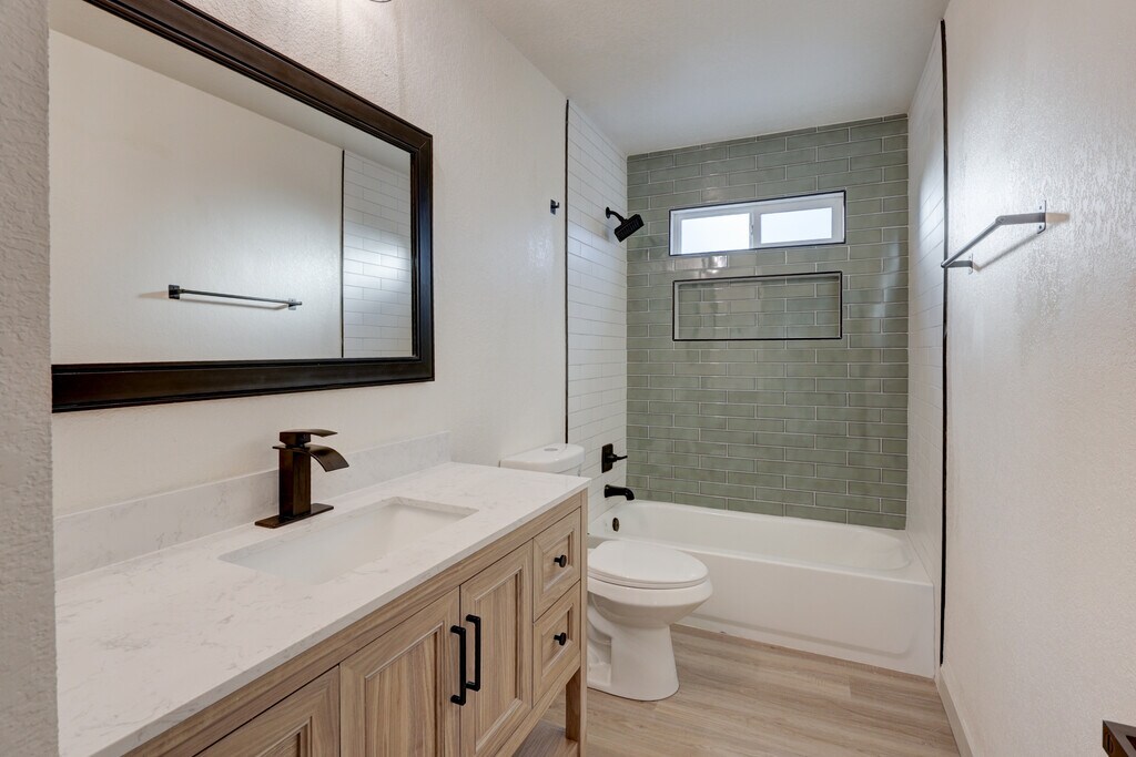 Fully remodeled home with new interior and exterior paint, new carpet and vinyl flooring throughout, brand new SS appliances, and new/modern bathrooms. There is a full bathroom in the hallway and a private 3/4 bathroom in the main bedroom. There's a carport for covered parking, long driveway, and a huge, private backyard. Quiet street in a great neighborhood, but close to shopping and easy access to I-225.