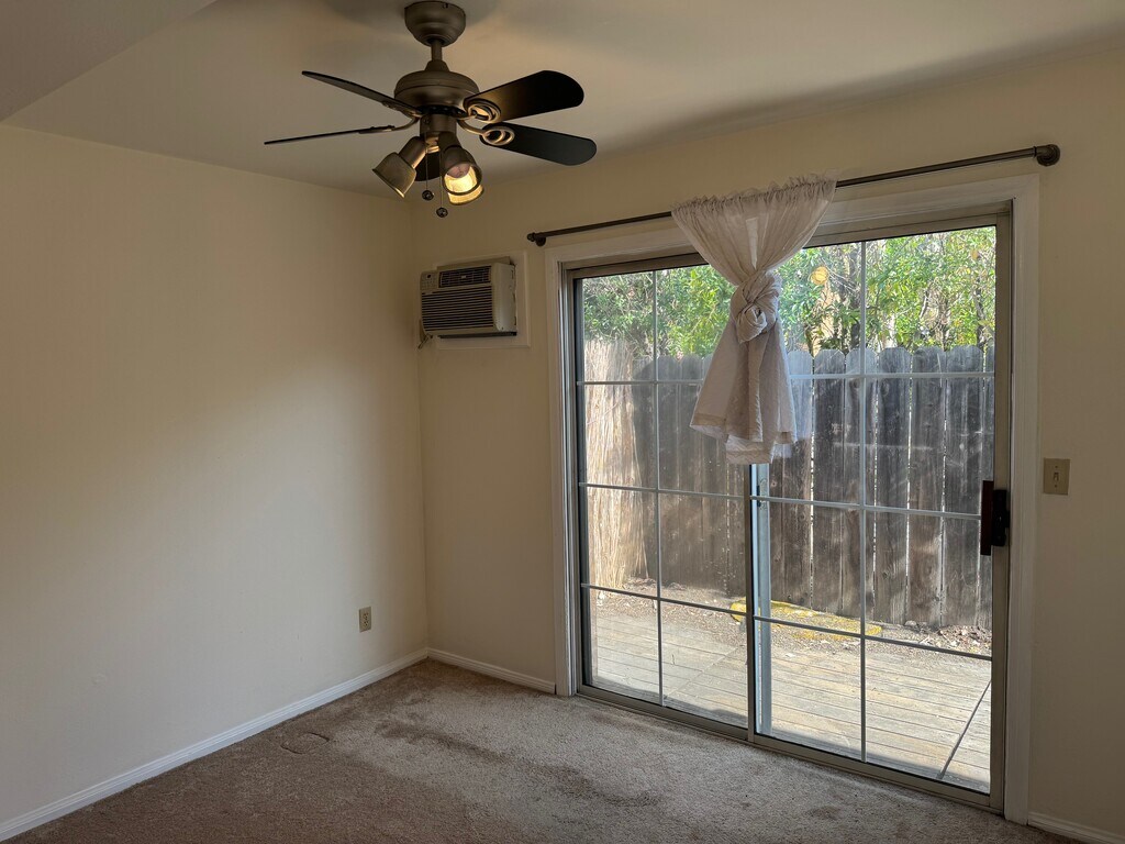 Private Guest House - Charming and secluded home with a bedroom that has its own private deck. Living room with high ceilings. It has a small work area and a small loft with a bed. A A good-sized yard and laundry facility, it shares with quiet owner in front house, in addition to a good storage space. It is a very quiet and safe neighborhood with good freeway access, and close to good schools. Will consider pets. Please text or email owner first.