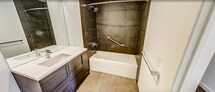 This 2-bedroom, 2-bathroom apartment has 1,050 square feet of living space. The unit features a spacious living room with a fireplace, providing a comfortable area for relaxation. The kitchen is equipped with a dishwasher and includes ample storage space. Each bedroom is designed for privacy, with easy access to the bathrooms. The property is wheelchair accessible and includes an elevator for convenience. Additional amenities include air conditioning, a fitness center, and a gated entry for security. Residents can also enjoy a smoke-free environment and on-site laundry facilities with a washer and dryer. The community features a pool for leisure and recreation.