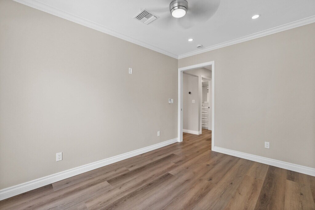 Beautiful Newly Built 1-Bedroom ADU in Los Alamitos Welcome to this stunning new construction ADU offering modern comfort and style. This private 1-bedroom, 1-bath home features luxury vinyl flooring throughout, recessed lighting, and thoughtful upgrades at every turn. The spacious kitchen is a chef’s delight with quartz countertops, stainless steel appliances—including a French door refrigerator, gas range, under-counter microwave, and dishwasher—and a charming window overlooking the lush, park-like backyard. Tenants will also enjoy access to the sparkling pool, perfect for relaxing or entertaining. The inviting bedroom includes wood plantation shutters, blackout blinds over the sliding door, and direct access to the outdoors. A large walk-in closet in the hallway is complete with built-in dresser drawers and a vanity area for added convenience. The beautifully appointed bathroom features quartz counters, a bidet/toilet, and an ADA-approved custom walk-in shower. Additional highlights include a private laundry room, one common wall, and a private entrance from the side of the house. Street parking only. This rare lease opportunity includes housekeeping, all utilities and combines privacy, comfort, and modern design—all in a desirable Los Alamitos location.