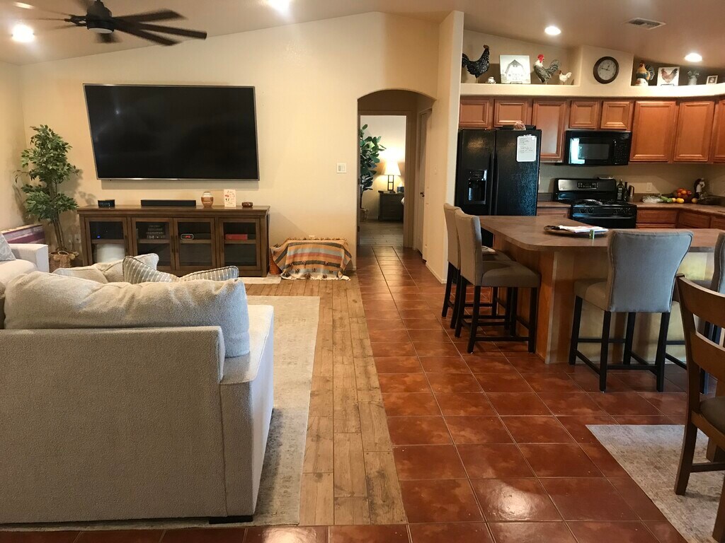 Beautiful 3bed 2 bath home next to Mesa Del sol golf course and Sprouts grocery store. Backyard with fire pit and pool. BACKYARD FURNITURE INCLUDED!!!!EVEN the backyard Tv, Washer Dryer, refrigerator, Large patio great for entertaining guest or just relaxing. Dog friendly and plenty of parking in garage and front of home.
