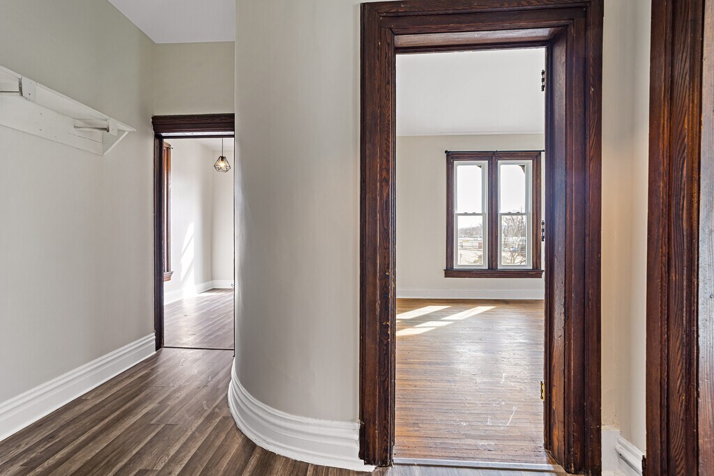 Welcome to this beautifully remodeled 2nd-floor apartment, where historic charm meets modern convenience. Nestled within a centennial home, this three-bedroom, one-bathroom unit has been thoughtfully updated to offer both style and comfort. Step inside to discover brand-new flooring that flows seamlessly throughout, enhancing the warm and inviting ambiance. The updated kitchen boasts sleek countertops, a brand-new oven, and a modern sink—perfect for those who love to cook and entertain. The three bedrooms provide flexibility to suit your needs. The two main bedrooms are spacious and filled with natural light, while the third front bedroom is a versatile space—ideal for a home office, walk-in closet, or nursery. One of the standout features of this unit is the newly installed air conditioning, ensuring year-round comfort—an amenity that's hard to find in historic homes. All of the windows in the unit have been replaced to ensure the heat and cool air stay inside the home. Located on the 2nd floor, this apartment offers a perfect balance of accessibility, safety and privacy. With its blend of historic character and modern upgrades, this apartment is more than just a place to live—it's a place to truly feel at home. Schedule a viewing today and experience the best of classic architecture with contemporary comfort!