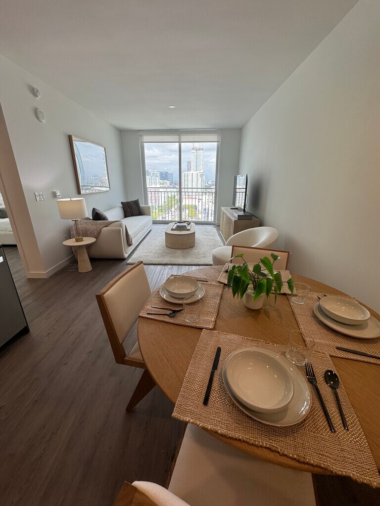 Experience modern living in the heart of Edgewater, where style, convenience, and comfort come together in a dynamic high-rise community. These residences feature smart, spacious layouts with floor-to-ceiling windows, oversized glass panels, and Italian cabinetry that blend sleek design with functionality. Inside your home, enjoy modern finishes including stainless steel appliances, large pantries, walk-in closets, in-unit washer and dryer, and private spaces designed for work, dining, and relaxation. Step outside your door to enjoy an unmatched collection of amenities. Unwind in the resort-style pool, jacuzzi, sauna, steam room, or massage treatment room. Stay active in the outdoor fitness center, yoga studio, or sports lounge, or take advantage of gaming and recording lounges designed for entertainment and creativity. Dedicated spaces like private offices, conference rooms, and the resident hub make it easy to balance work and play. Everyday conveniences are built into the community, with 24/7 concierge and security, doorman service, package room, EV charging stations, bike storage, and storage units. Outdoors, relax in the zen garden, enjoy dining at the BBQ and picnic areas, or spend time with your pets at the dog park and pet spa. With an ideal location in Edgewater, you’re just minutes from Miami’s best dining, shopping, and cultural destinations.