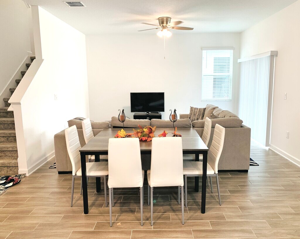 Hermosos hogar completamente nuevo en el atractivo STOREY PARK complejo! Las características: - 2 pisos, 2455 ft², Planos de planta espaciosos - 5 habitaciones, 3 baños completos que incluyen una hermosa suite principal en el segundo piso. - Amplia habitación familiar con una cocina de concepto abierto y un adicional de comedor/espacio de oficina. - Garaje para 2 automóviles y una entrada grande con espacio para muchos más de los automóviles - Amplio patio en la galería principal y en la parte posterior - Entrada sin llave a través de huella digital, teclado, aplicación - sistemas de casa inteligente, como luces de LED en todas las habitaciones, termostato, controlador de garaje, cerraduras y sistemas de seguridad. Controle tu casa desde cualquier lugar: todo lo que ya ha sido preparado por el costear los propietarios de viviendas. Incluido ¿Qué en el alquiler: - Internet de alta velocidad, televisión por cable y hogar de la línea de teléfono. - el servicio de electricidad de paneles solares sin cargo adicional. - Storey Park de acceso de la casa club. - Lavadora y secadora dentro del apartamento ¿Qué no está incluido en el alquiler: - los servicios públicos, como electricidad, agua, alcantarillado y recolección de residuos. - el cuidado del césped. La ubicación: - 1 minuto a pie hasta el nuevo Storey Park, la casa club. - Storey Park es un hermoso complejo con comodidades que incluyen una casa club estilo centro turístico con piscina, jacuzzi y gimnasio, canchas de tenis, áreas de juegos infantiles, y está cerca de muchos de los senderos naturales y las áreas de conservación. - A minutos de distancia del aeropuerto MCO, las autopistas 417 y 528, y mejores escuelas en el área. Aviso legal: - el precio y la disponibilidad están sujetos a cambios sin previo aviso. - Mobiliario se muestra en las fotos pueden o no ser incluidos.