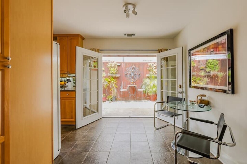 Celebrity Lifestyle Spanish Mission Home with Downtown Views 2 Bedroom, 2+ Bathroom, 1 Car Garage Live behind the hedges, on a hill with downtown views in privacy & seclusion. Unique Spanish Mission remodeled and updated home with hot tub, outdoor shower, private back patio, outdoor daybed, courtyard with fountain, bedroom balcony, redwood deck, fireplace, four double French doors, indoor/outdoor stereo speakers, Nest thermostat, and an automatic garage door welcome you home. Bi-Weekly home cleaning service included as well as Wweekly yard maintenance and landscaping service. This stunning home offers a perfect blend of luxury and comfort. Nestled in a prestigious area, it provides privacy and seclusion while boasting modern amenities. The unique Spanish Mission style, outdoor oasis with a hot tub, outdoor shower, and various relaxation spots make it an ideal retreat. The property features a bedroom balcony, redwood deck, fireplace, and four double French doors, accentuating the celebrity lifestyle. Experience the convenience of a Nest thermostat and a private back patio with an outdoor daybed, perfect for relaxation. Nestled behind hedges, this unique Spanish Mission residence offers privacy, seclusion, and breathtaking downtown views. The property was extensively remodeled with unique features preserved. The home features a dramatic landscape entry, backyard garden patio daybed with a shade triangle, hot tub, outdoor shower, interior courtyard with fountain, master bedroom balcony, redwood deck, Batchelder fireplace, four double French doors each with ramadas, dusk/dawn landscape and home lighting, a convenient laundry with stack washer & dryer and central heat/air with automatic Nest thermostat. Amenities include: Hardwood floors 110 and 220 V charging outlet in garage for electric vehicle charging Granite Countertops in the kitchen Built in Microwave (new) 5 burner natural gas stovetop Extra large side-by-side refrigerator with automatic ice maker (new) Ice and water through the refrigerator door with purification filter Dishwasher Oversized wooden kitchen cabinets Under cabinet lighting Garbage disposal Food pantry in the kitchen Mirrored backsplash in the kitchen Full size clothes washer and dryer in the hallway laundry closet Central heat & air conditioning Digital/programmable Nest thermostat Batchelder designed wood-burning fireplace with natural gas starter in living room Ornate fireplace black metal spark guard Four sets of Double French Doors Four outdoor entrance pergolas over French Doors Outdoor redwood deck off office/second bedroom Balcony off Master Bedroom with downtown view Granite countertop in master bathroom Oversized 2 person shower with high-end shower heads Double-head shower in Master bathroom with rain head + regular shower style Oversized medicine cabinets in each bathroom Bathroom exhaust fan Bathroom wall mounted heater Frameless glass shower doors Cherry wood cabinets in master bathroom Designer Kohler sink in master bathroom with water from a wall mount faucet Double sink in main hallway bathroom Urinal with electric-eye automatic flush Hidden power outlet under master bathroom sink Keyless entry with up to 10 codes including yours 8 estate style outdoor porch lights with automatic timers Walk-in closet in the office/second bedroom Double level hanging rods in closets with shelves Lights inside each closet Storage closet in hallway Hot Tub (holds 6 people) with cover Outdoor shower in private back yard Two entrance gates to backyard Double sided redwood privacy fencing with sound barrier Front garden interior courtyard off dining room Ornate crown molding in living room and dining room with recessed ceiling Mini-blinds & Draperies included Front entry gateway with built in secure mailbox capable of holding 2+ weeks worth of mail Halogen lighting figures in kitchen, bathrooms and hallway New wrought iron & alabaster stone chandelier in center of dining room Double pane sliding glass windows Heavy duty deadbolt locks on all doors and gates (same key) Touch sensitive light dimmers Smoke & carbon monoxide alarms Wired for fiber optic gigabit speed internet (service at your expense) Beautiful views of Downtown Los Angeles and the mountains Automatic sprinkler systems front & back yards Automatic Malibu landscape lighting front & back yards Lush landscaping with multiple varieties of palm trees Privacy hedge around entire house Water fountain in front courtyard Automatic Garage Door opener External keyless-entry keypad to open garage door Heavy duty double layered garage door for security and sound dampening Garage underneath house on lower subterranean level Wired for stereo speaker sound inside and outside the house -Living Room -Bedroom 1 -Master Bedroom (ceiling mounted speakers included) -Courtyard (outdoor speakers included) -Back yard (outdoor speakers included) -Rooftop deck (outdoor speakers included) The home has been seismically-retrofitted to withstand any earthquakes Situated in a desirable neighborhood, 1203 South Rimpau offers the perfect blend of tranquility and convenience. Enjoy the privacy of a hillside location with easy access to the vibrant city life. Live in luxury while being just moments away from the best dining, shopping, and entertainment options. Close by to everything, yet not in the heart of the crowded areas lets you live in a much quieter area of Los Angeles. Your home is located in the center of everything, yet away from the large-city crowds for a centrally-located neighborhood. Strategically located in between downtown (plus Koreatown) to the east and Beverly Hills to the west and between Hollywood to the north and LAX airport to the south, you'll be able to get to all the city has to offer. West Hollywood and the Sunset Strip are to the northwest, and Silverlake and Griffith Park are to the northeast. Interstate 10 is to your south to get to other parts of Southern California. The local neighborhood offers coffee shops, rest