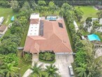 Magnificent 7-bedroom, 7-bathroom Custom Estate mini mansion in Plantation Acres, built 2017 Spanning over 6598 sq ft on 1.07 Acres, 12 ft ceilings, Spacious layout offers both style and functionality. White glass & porcelain tile flooring, electric shades, LED Lighting, Impact windows, Solar power and many smart home upgrades. Custom kitchen, bar and hangout areas to meet your hosting needs. Master suite features a sitting area with a wet bar, huge walk-in master closet and spa like bathroom. Media room plus a separate 1-bedroom guesthouse & Covered inner Courtyard in addition to an enormous enclosed sunroom. Custom pool & spa deck alongside a large enclosed backyard with mature fruit trees.. This property embodies luxury, efficiency, and modern living, making it the perfect place to call home.