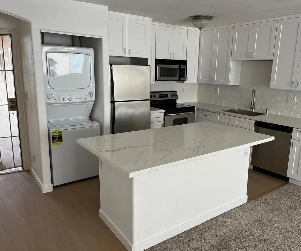 Newly remodeled 2 years ago kitchen and bathroom* for rent by Owner Only serious inquiries. Will request for application before showing. Background check required. Have no prior eviction history. Good credit score. Provide first month's rent and security deposit before moving in. Valid identification and proof of minimum of 2x income from applicant/s required. Will do current/prior LL reference check. *bathroom photo was taken before shower blade wall added. No tub. Unit unfurnished INCLUDED: Stainless Steel Appliances: Refrigerator, Microwave, Dishwasher, Stove, In unit Washer/Dryer, Light Fixtures with Ceiling Fans, Wall Heaters 2 Tandem Carport, Parking spots, Easy Street Parking Water and Trash included Second Floor Unit, Secured Building with Locked Gates On site Bicycle racks Professional building management and maintenance COMMUNITY Safe Walking Distance to USD, YMCA (which has great and affordable workout and childcare options), and the Morena Trolley Stop off the Green Line Near many local shopping centers, including Rip Curl, Coronado Breweries, Fashion Valley Mall, and the SD river running/biking trail Short distance away from Mission Bay, Old Town, Fashion Valley mall, Sports Arena, and the 163, 5, and 8 highways Very central location to all popular neighborhoods such as Little Italy, Downtown, North Park, and Pacific Beach