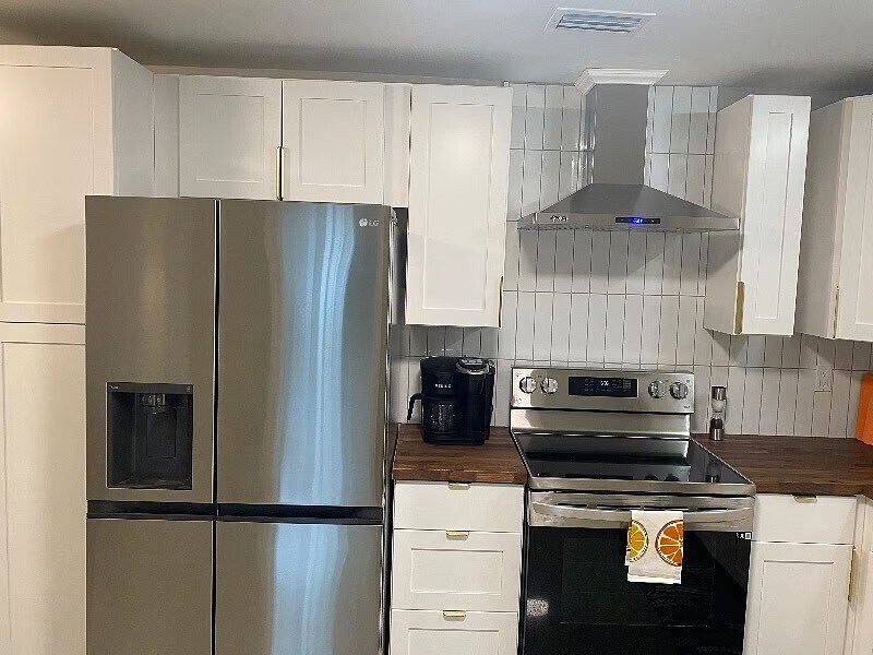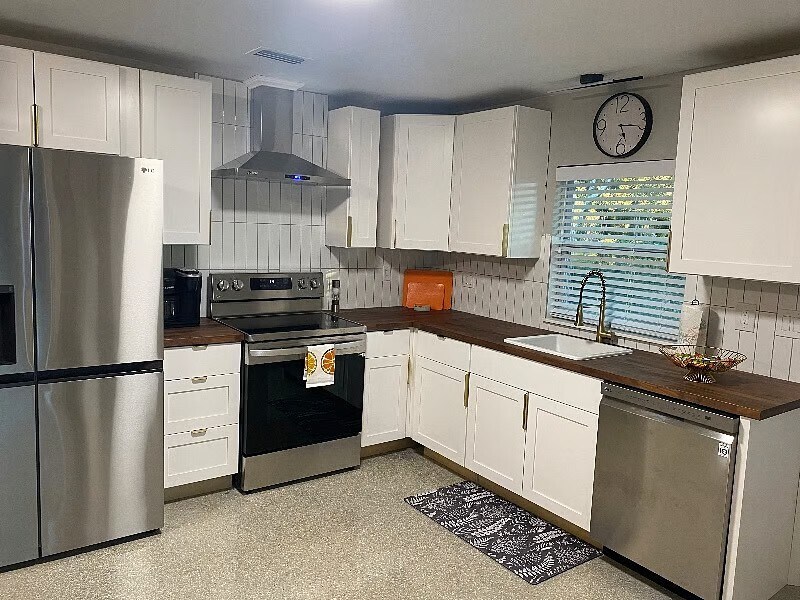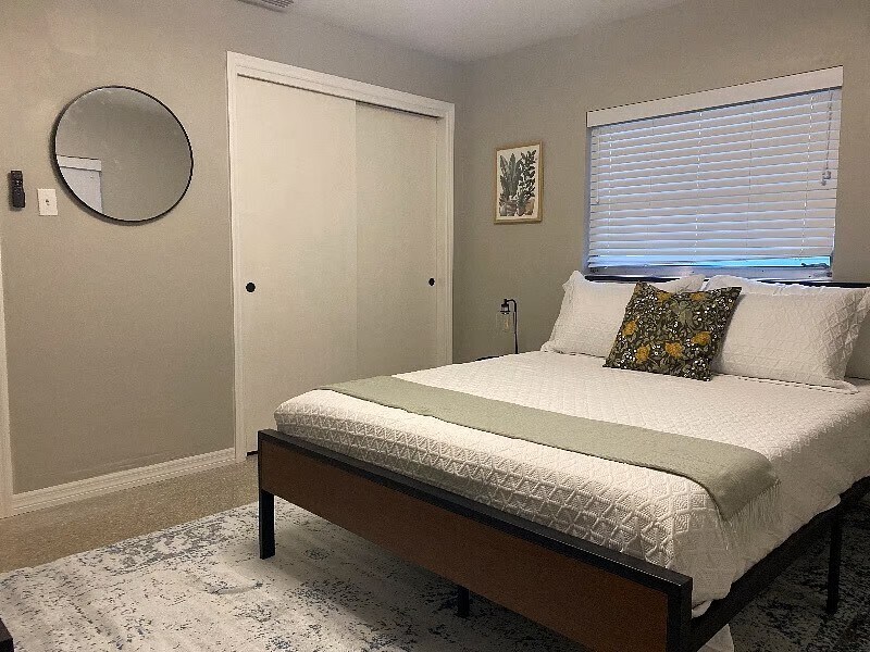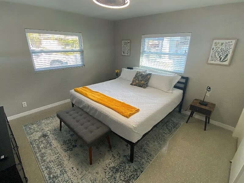 Cozy 2/1 Bungalow near everything that you would need. Fenced in back yard and updated kitchen and bathroom. Newer A/C, Terrazzo floors, fully furnished. Smart TV and security cameras as well. Easily accommodate 2-4 people comfortably depending on relationship status of the folks renting the place. Fairly quiet street and the backyard is basically private. The backyard bumps up to a well maintained park for a old folks home. Pet friendly.