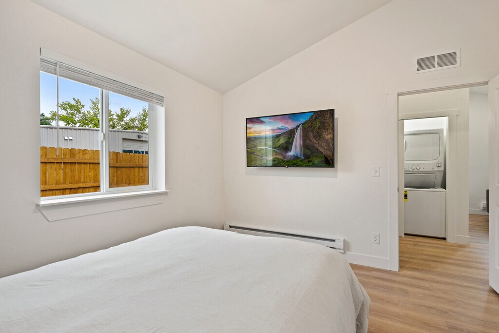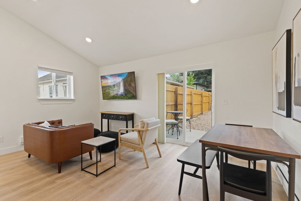 Hogar renovado y completamente amueblado en el corazón del centro de Loveland. Dos dormitorios, un baño, aire acondicionado para esos calurosos días de verano, televisor inteligente con pantalla plana de 50 pulgadas, cocina completamente equipada con Wi-Fi (alta velocidad), lavadora, secadora, patio privado con fogón y barbacoa.