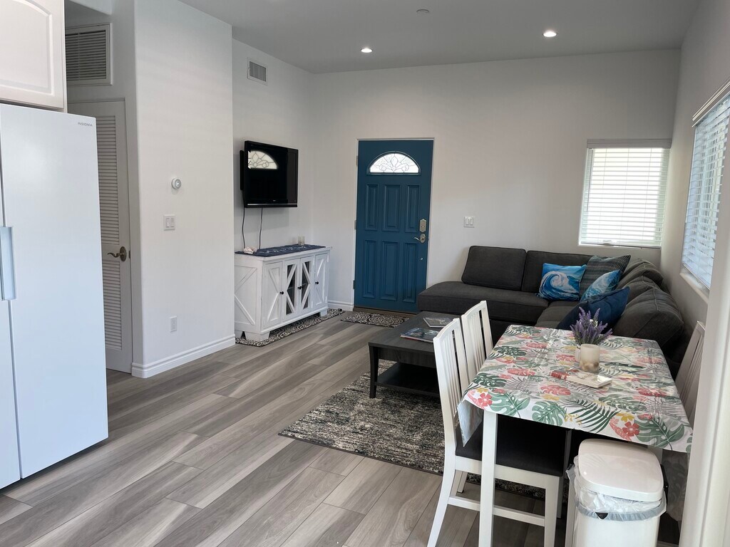 Moderno dúplex frente al mar con alojamiento totalmente nuevo. Dos casas alejadas de las hermosas playas de arena blanca y los legendarios atardeceres de Manhattan Beach, a solo cinco minutos a pie de la ciudad para encontrar docenas de restaurantes, tiendas, mercados y entretenimiento. Dos dormitorios con camas Queen, sofá cama Queen, ducha y bañera, amplia terraza con parrilla, cocina completa con nuevos electrodomésticos y encimeras de piedra, televisor grande con pantalla plana. Prefiero el arrendatario a corto plazo. $395 por noche