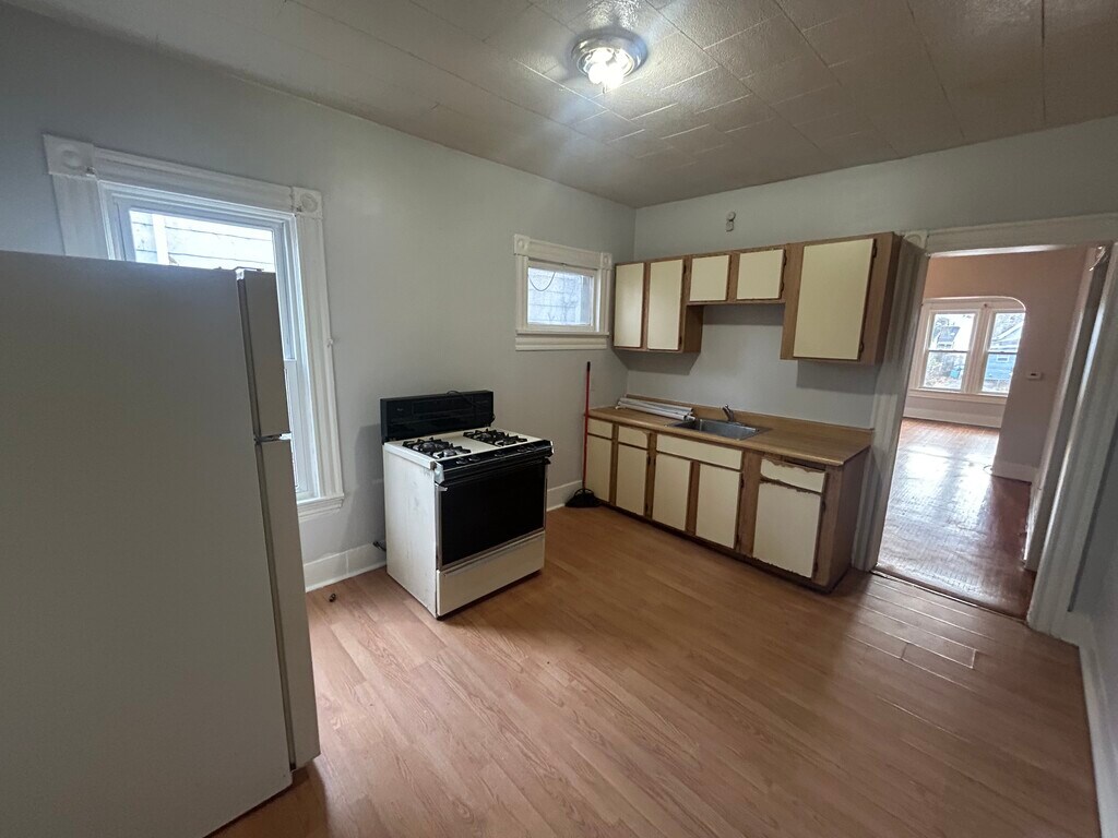 Spacious 2-bedroom, 1-bath apartment at 121 Elba Street in Rochester's Plymouth-Exchange neighborhood, offering a functional layout with classic charm and modern convenience. This unit features hardwood floors, a bright living area, and two well-sized bedrooms with ample natural light. The kitchen comes fully equipped with appliances, including refrigerator and range/oven, and the unit includes laundry (washer and dryer available) for added convenience. Gas heat, a clean and practical bathroom, and a well-maintained interior make this a comfortable, move-in-ready option. Conveniently located near downtown Rochester, public transportation, major highways, and URMC, this apartment is ideal for tenants seeking space, character, and accessibility in a high-demand area. JAN 1 MOVE IN Option for renovated bathroom/kitchen+cabinets for $1300/month.