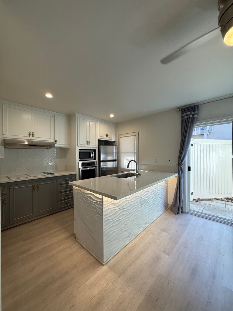 COZY AND PRIVATE FRONT END UNIT WITH HIGH END FINISHES. This lower level coastal vintage inspired home consists of: two patios, newer laminate flooring, refinished kitchen cabinets w/newer quartz counters and stainless steel appliances, large porcelain tiled bathrooms, dual glazed windows and sliders, ceiling fan and a fireplace for those cool chilly nights. Primary bedroom has two large closets and en-suite bathroom. No smoking. Pets (limited size and breed) will be extra. On-site laundry rooms. Water, gas and trash paid by owner. Access to Westcliff mall across the street, shops and restaurants on 17th street steps away. Mariners Elementary and Newport Beach library within walking distance. Close access to the beach and bay.