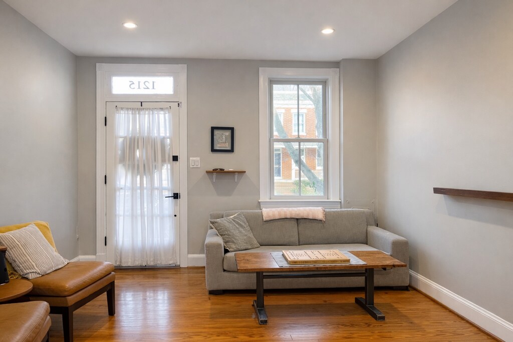 Beautifully updated Capitol Hill rowhouse offering bright, open living space and a rare private backyard. The main level features hardwood floors, recessed lighting, and a flexible living and dining layout with great natural light. The updated kitchen includes white cabinetry, subway tile backsplash, stainless steel appliances, and ample storage. Upstairs are well-sized bedrooms with hardwood floors and a modern full bathroom, ideal for a couple or a home office setup. The fully fenced private backyard includes a brick patio and pergola-covered dining area—perfect for outdoor dining, entertaining, or relaxing at home. Located on a quiet residential block just minutes from Metro, Eastern Market, and neighborhood restaurants and coffee shops. Available for move-in in April. Pets considered on a case-by-case basis.