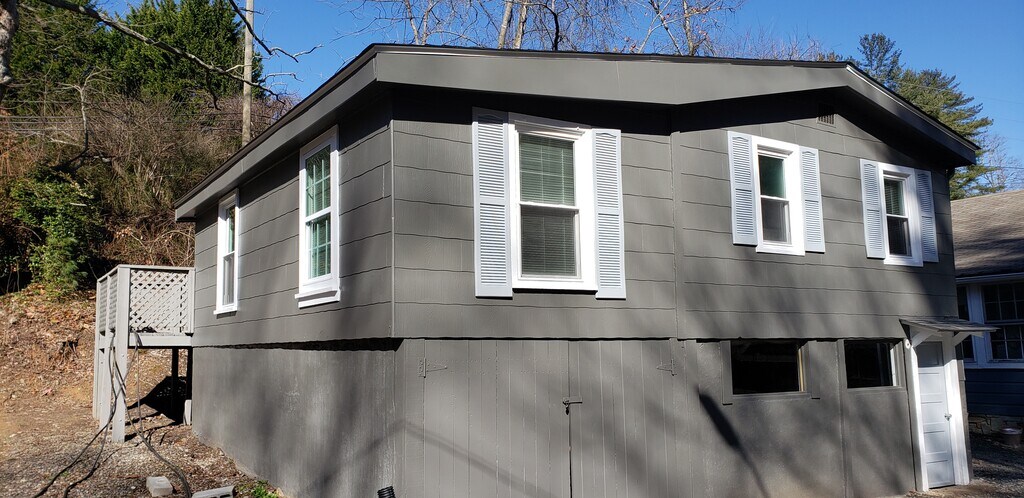Beautiful house in West Asheville. 2 bedroom, 1 bath, completely renovated. Floor to ceiling windows, large closets, deck, off street parking with garage. EV charging. Basement with washer and dryer. Some pets okay.