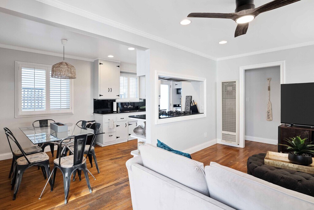 Furnished Rentals (1-11+ Month Terms) Thoughtfully remodeled & full of coastal charm. This 3-Bed (1-Queen, 1-Full, & 1-Full Daybed) 2-Bath 912 Sq. Ft. home offers comfortable living with 2-car parking (1-car garage & 1-car driveway). The home features a cozy front patio perfect for BBQ’s along with a backyard! The kitchen includes stainless steel appliances, granite countertops, & opens to a dining area for four. Both bathrooms are beautifully updated with Carrara marble, modern showers, & sleek vanities. Enjoy an easy stroll or bike ride to the beach or downtown Hermosa Beach, where all the cool shops, fun dining, live music, & beach life are located! Just minutes away! Affordable coastal living at its best! Prices go up during the Summer months. Small pets considered!