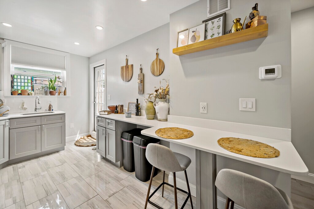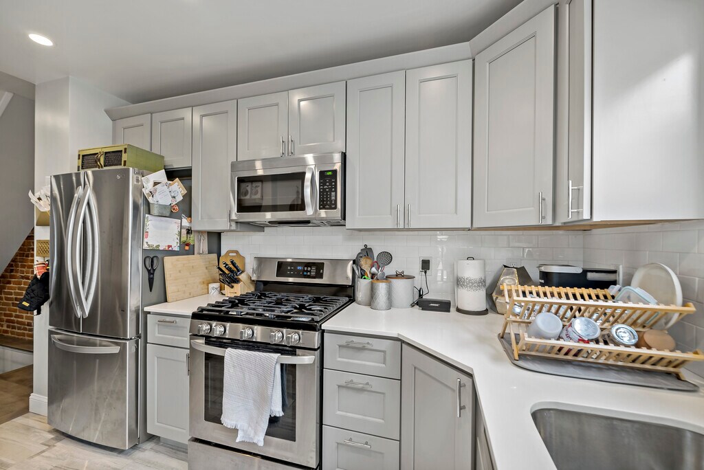 Welcome to 1225 Tree Street- a stunning home just 2 blocks from Passyunk Avenue's famous dining and shopping! This adorable street is situated off of Broad Street- convenient for access to the Broad Street Subway, 11th & 12th St Buses that go to and from Center City, and if you are a Jefferson Employee, it is one block to the Shuttle to bring you to the Navy Yard and Center City Campuses. Enter into an open concept living space- exposed brick, recessed lighting, & wood floors throughout. The kitchen features all stainless appliances- dishwasher, stove, fridge, & microwave. A small fenced yard off of the kitchen is perfect for entertaining on summer nights. The basement is finished- with endless possibilities of another living space, office, play room, & etc. Full size washer and dryer tucked away in the rear of the basement. Upstairs you will find 2 bedrooms with closets, and a spacious tile bathroom with tub. The home has been completely renovated recently. Central air and heat. No cats, or large dogs.