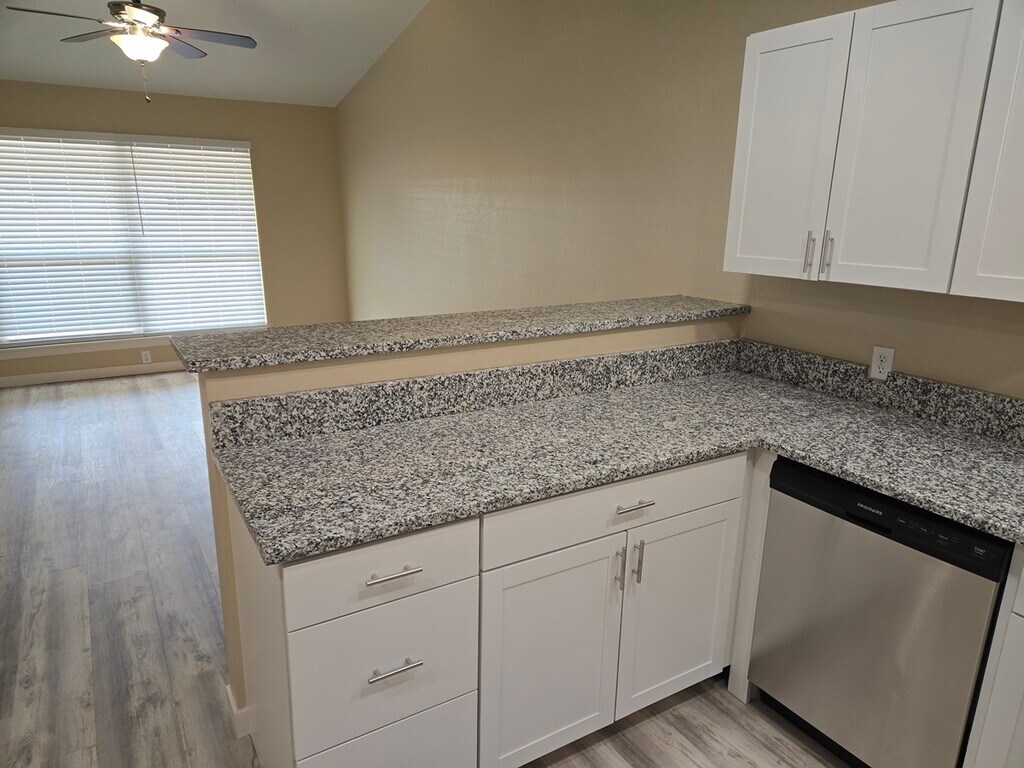 Un nivel, con estilo de jardín, casa adosada. Nuevas renovaciones contemporáneas, gabinetes vibrantes, encimeras de granito, pisos cerámicos en todo el lugar. Amplio cocina con una barra comedor. Techos abovedados, ventiladores de techo, una sala de lavandería. Patio cubierto y un pequeño patio con cerca de privacidad. Limpio, tranquila y cómoda. Park junto a tu hogar, no hay escaleras o vecinos arriba o abajo! Todas las superficies duras hace que sea perfecta para aquellos con alergias. No se admiten animales. Llama, envía un mensaje de texto o correo electrónico para programar un recorrido hoy mismo!