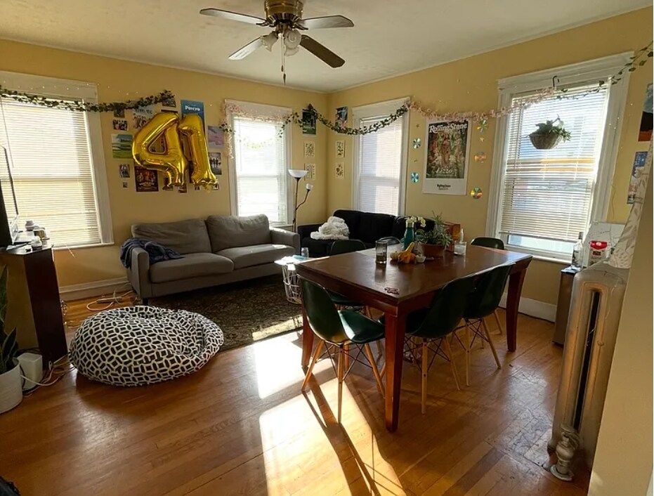 Spacious and well-located 5-bedroom, 2.5-bathroom on a corner lot at Winthrop & George Street just minutes from Tufts University and the College Ave Green Line T stop. Spans three full levels of living space ideal for privacy and flexibility 2.5 updated bathrooms Modern kitchen with gas stove, dishwasher, and ample cabinet space Off-street parking Patio space Sun-filled rooms with hardwood flooring Generously sized bedrooms with closets Easy walk to Tufts, restaurants, parks, and public transit