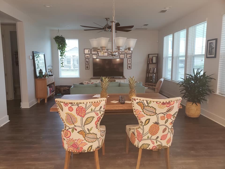Hermosa casa en Sweetbay disponible por más de 12 meses. Disfrute de una vida de concepto abierto en la planta baja con una sala delantera que se puede utilizar como comedor formal, oficina, etc. En la planta alta encontrará tres dormitorios, dos baños y medio, una amplia sala de lavandería con lavadora y secadora incluidas y un amplio loft. Esta casa está ubicada en un atractivo estacionamiento en esquina con porche envolvente, cerca de Chickadee Park. Este hogar cuenta con puertas de 2,5 metros/8 pies, encimeras de cuarzo en la cocina y los baños, tocadores elevados, garaje separado para dos automóviles y mucho más. Esta impresionante casa de Samuel Taylor fue construida de forma sólida con paredes exteriores de 2x6, mayor capacidad de aislamiento, con un sistema de anclaje de varilla y amarre para huracanes. La comunidad de SweetBay ofrece dos piscinas comunitarias, una casa de botes con acceso a la bahía para practicar kayak, surf de remo y pesca, cancha de baloncesto, senderos para caminar y un futuro centro urbano y puerto deportivo.