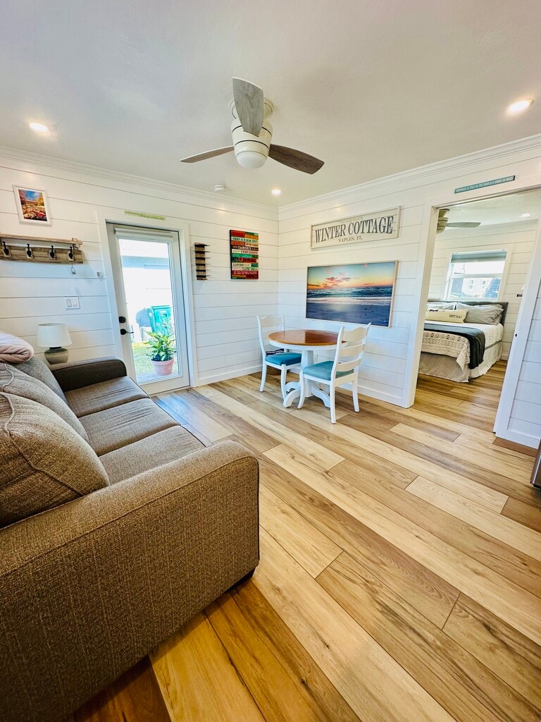 Alquiler por temporada: del 28 de mayo al 31 de octubre Excelente ubicación en el centro de todo. Barrio de la zona azul de la zona histórica de Florida: Rosemary Ln. En promedio, al mediodía, la calle ve aproximadamente un automóvil cada 3-5 minutos. A 5 minutos en automóvil de la playa (2,4 kilómetros/1,5 millas). No encontrará un alquiler de casas unifamiliar en Nápoles, cerca de la playa, por este precio completamente amueblado. Si lo hace, vivirá por encima o por debajo de alguien en un apartamento o compartirá una pared en un condominio. Bonito hogar unifamiliar pequeño. Ambos dormitorios se encuentran en el lado más pequeño, pero ambos tienen capacidad para una cama Queen. El más grande puede caber en un rey, pero es ajustado. Esta casa es ideal para 1 o 2 personas. La ocupación máxima es de tres personas. Los nombres de todos los ocupantes deben aparecer en la solicitud de alquiler. 2500 USD/proporcionado con todos los servicios públicos incluidos (eléctrico, agua, propano, Wi-Fi) Primer mes, el mes pasado y un mes de depósito de garantía requerido al firmar el arrendamiento ($7,500). • nueva cocina • nuevo baño • nuevo suelo • nueva pintura en toda la superficie • rancho (sin escaleras) • gama de propano (difícil de encontrar) • sonido envolvente Sonos en la sala de estar con sub • altavoces Sonos en la cocina y el baño • lavadora y secadora en el cobertizo conectado • mucho estacionamiento disponible. Espacio suficiente para un barco, vehículo de recreo pequeño, remolque, etc.