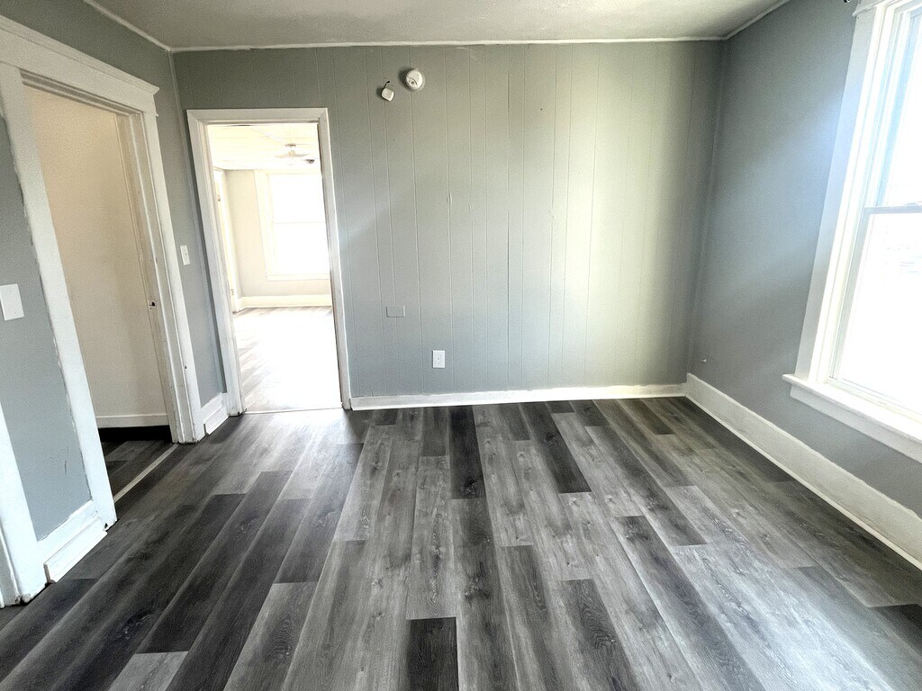 Updated spacious 3-bedroom apartment on the 2nd floor. Fresh paint. New countertops. Brand new flooring. Other updates. Shared off-street parking. Tenant pays gas, electric, and flat water fee. No pets.