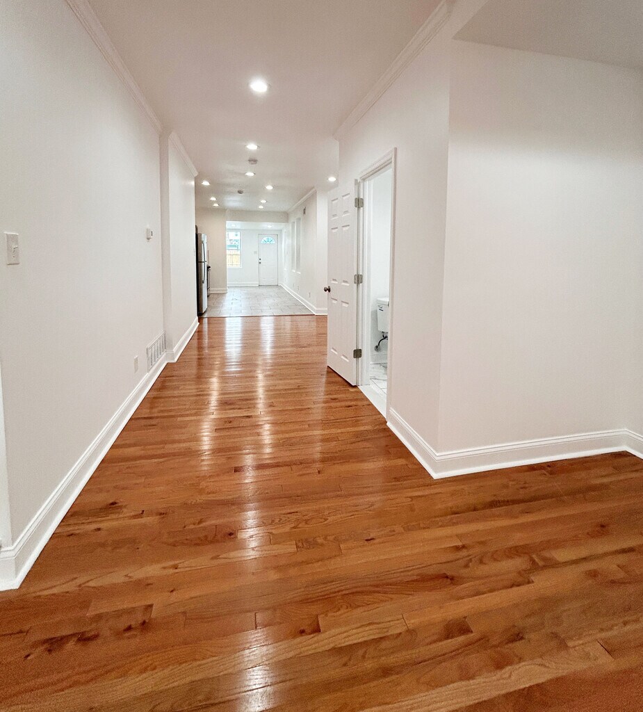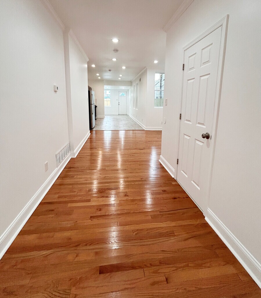 This beautifully renovated 3 bedroom, 2.5 bathroom home is now available for immediate move in. The home features recessed lighting and hardwood floors throughout. The spacious kitchen has stainless steel appliances including a gas stove, built-in microwave, and dishwasher. Head to the second floor where you will find a spacious and bright primary bedroom with en suite bathroom, 2 additional bedrooms, and a hallway bathroom. Additional features include a newer central air and heating system, W/D hookup and powder room on the first floor, full finished basement, and large fenced in backyard. Easily accessible to public transportation. Credit & background check: $39.99 per person application fee. 12 month lease required. Cosigners are not accepted. Renter pays all utilities- electricity, gas, and water. Please reply to this ad for video tours, application instructions, and more information. No text messages please.