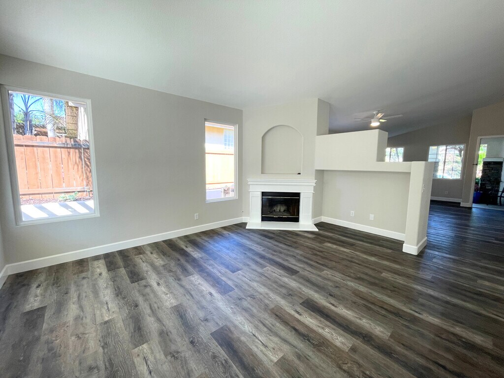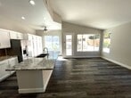 Beautiful single level 4 bedroom, 2.5 bath home is available now and will go quickly! This home has been freshly painted, features hard surface flooring, provided appliances including washer and dryer, and air conditioning. The layout is open with a spacious living and dining area. The kitchen is well appointed with a central island and easy flow into the backyard. This property offers a peaceful setting with a generous backyard and large pool and jacuzzi, perfect for relaxing or entertaining on warm summer days. Additional features include a three-car garage and owned solar panels which cover the majority of electric usage. Resident will pay for all utilities. Property owner to pay for pool and landscaping service.
