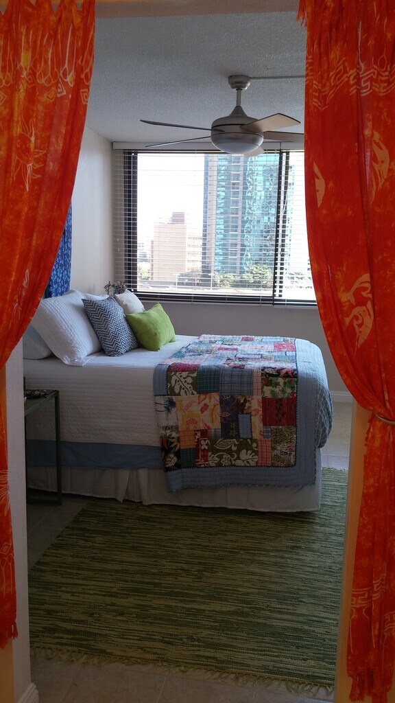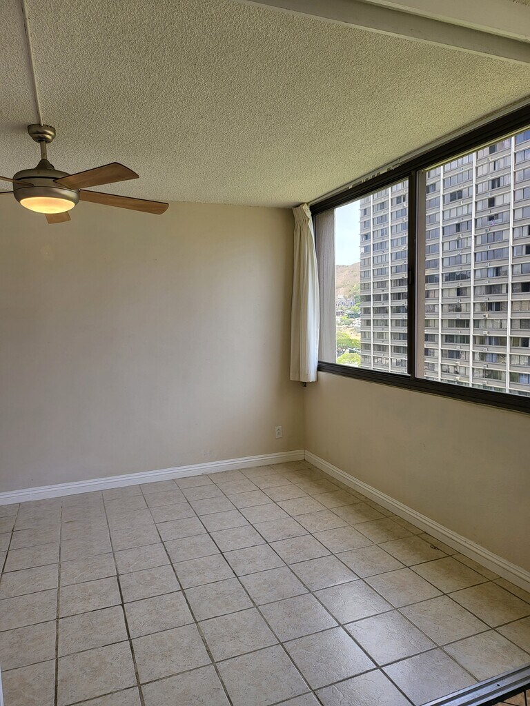 Esta unidad en el piso 12 ofrece una vista completa de la terraza del jardín de 1,5 hectáreas de Kukui Plaza, que incluye una piscina, una fuente para niños, un enorme pabellón, un sendero para trotar/caminar, numerosas áreas de picnic, vegetación y follaje tropical exuberante, una cascada suave y mucho más. Verdaderamente un oasis oculto en el corazón del centro de la ciudad. Restaurantes, tiendas, negocios, entretenimiento y vida nocturna se encuentran justo detrás de su puerta principal. Conduce de 5 a 10 minutos hasta el centro comercial Ala Moana/playa Ala Moana. Conduzca cinco minutos más hasta Waikiki o tome el autobús de la ciudad frente a este edificio. Recepción con personal de seguridad activo las 24 horas en el lobby y en todo el hotel. Tarjeta de seguridad/mando para entrar/salir de la propiedad. Unidad mejorada con amplios armarios, puertas de armario de vidrio esmerilado, iluminación de armario, interruptores de iluminación de atenuación ajustable en toda la unidad. Electrodomésticos de acero inoxidable, bar de 8 pies con taburetes para comer/entretener. Ventiladores de techo con control remoto. El arrendatario paga su propia factura eléctrica y telefónica. El cable básico está incluido en el alquiler. No se permite fumar en el hotel y no se permiten mascotas. Nota: La unidad está ocupada actualmente. Las presentaciones comenzarán el 1 de junio solo con cita.