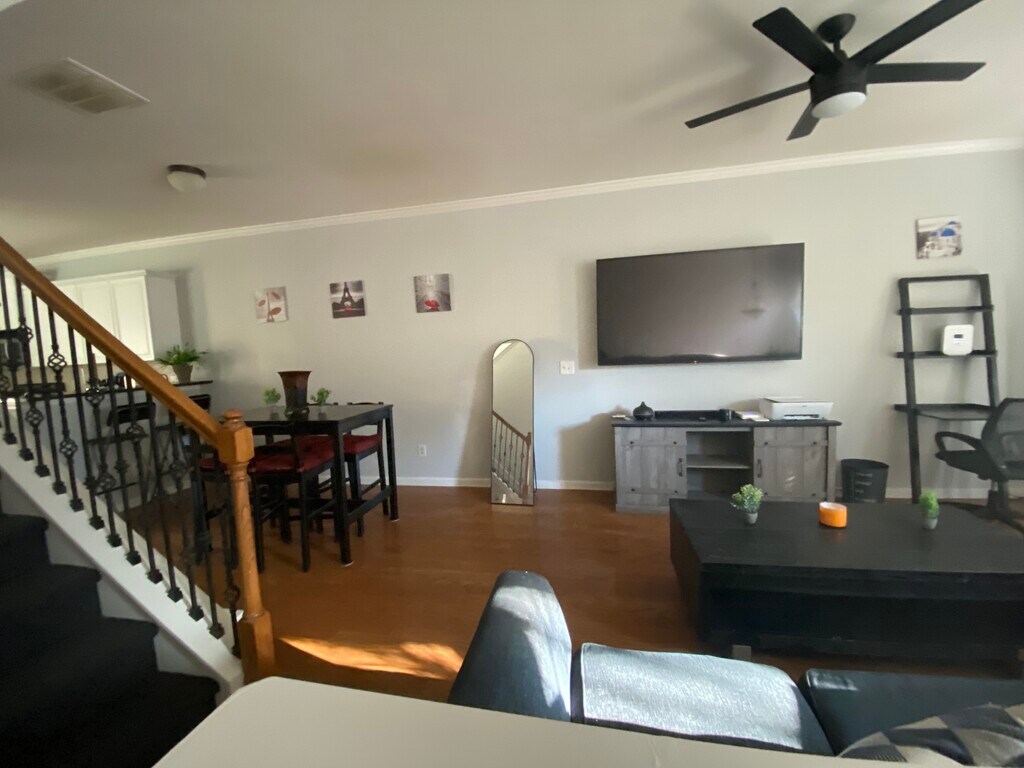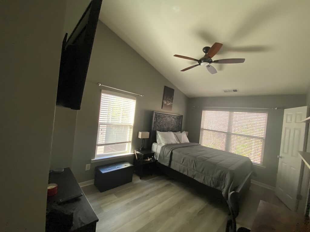 A Four-Bedroom Ranch-Style Home with BnB Feel • Secured by ADT, Ring, and D-Link • Ideal for professionals or mature college students wanting privacy and security • Safe, Familial Neighborhood in the Willowbrook Community • Newly renovated. Security cameras on exterior perimeter PRIVATE, Spacious Furnished Bedroom (Primary), Large En-suite bath, Walk-in Closet w/ Storage Space, Large Spa-Inspired Soaking Bathtub (and Shower), Flat-screen TV, Large Windows, Vaulted Ceiling, Smart-Lock Entry, Desk Workspace, Thermostat Control and Ceiling Fan LIVING/DINING ROOM/HALL • Smart TV • Smart Thermostat Control and Ceiling Fan • Couch • Coffee Table • Two Credenzas • Dining Table • Marble High Bar w/ Seating FULLY-EQUIPPED KITCHEN • Samsung Appliances • Gas Range • Above Range Microwave • Refrigerator • Ninja Foodi • Coffeemaker • Chef’s Cutting Table • Marble countertops • Four-slot toaster • Cookware • Dishware PARKING • ONE-Car Driveway, Guest Parking SECURE, SMART HOME • ADT Security System (Police WILL come if alarm sounds) • Ring Cams • Smart locks • Smart thermostats • Smart TVs • Alexa Echo • Charging Ports In the area: public transportation, grocery stores, restaurants, parks, Beltline, jogging trails and Chattahoochee River • Frequent area buses to Arts Center, Midtown, West End and Avondale Estates train stations • Local Marta Buses (6-12min walk) • West Midtown ((5-7min) • Midtown/Downtown (10-15min) • Buckhead (10-15min) • Piedmont Hospital (10min), Emory Hospital and Grady Hospital (15min) • GA Tech (12min), GSU and Atlanta University Center (15min) Emory Univ (25-30min) • Hartsfield Airport – ATL (25-30min) • Top rated public schools in area